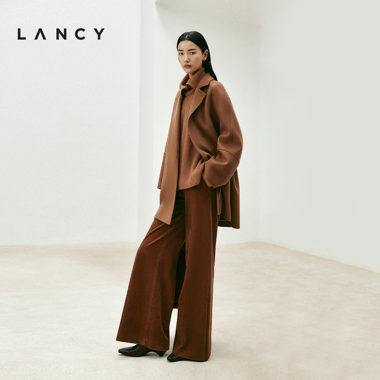 LANCY/朗姿2025年冬新款气质羊毛羊绒双面呢中长款大衣毛呢外套女