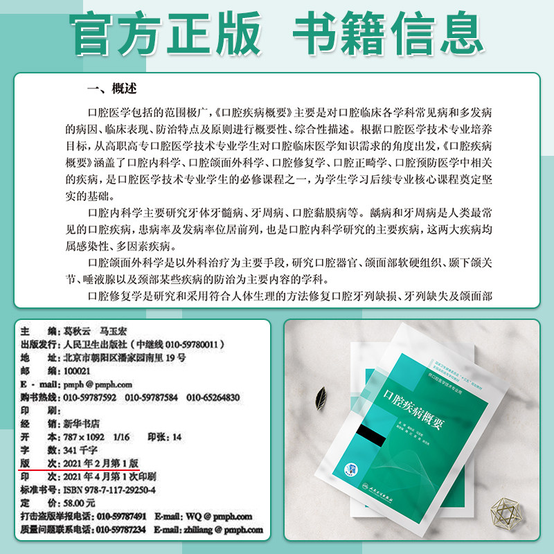 口腔疾病概要 十三五 全国高职高专口腔医学和口腔医学技术专业规划教材 葛秋云 马玉宏 主编 人民卫生出版社 9787117292504