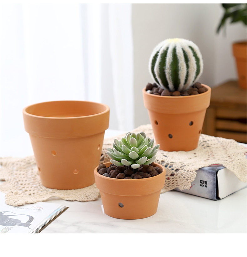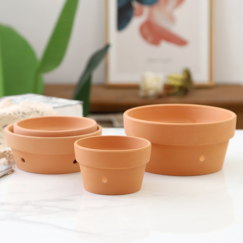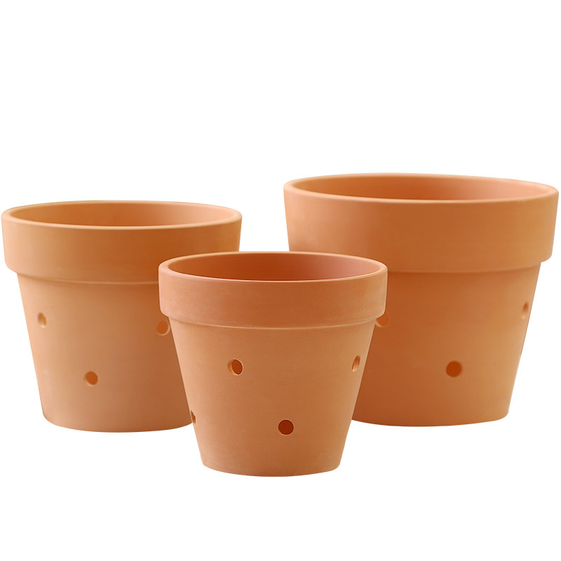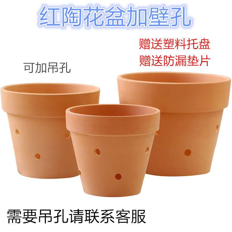 红陶花盆吊挂泥瓦盆多孔粗陶加壁孔大口径兰花盆绿萝花盆吸水透气