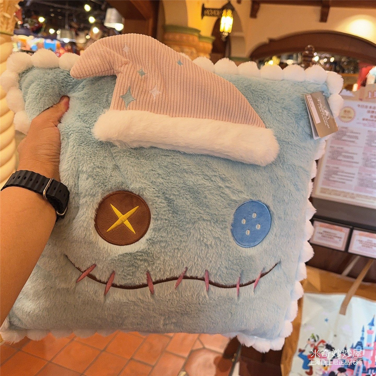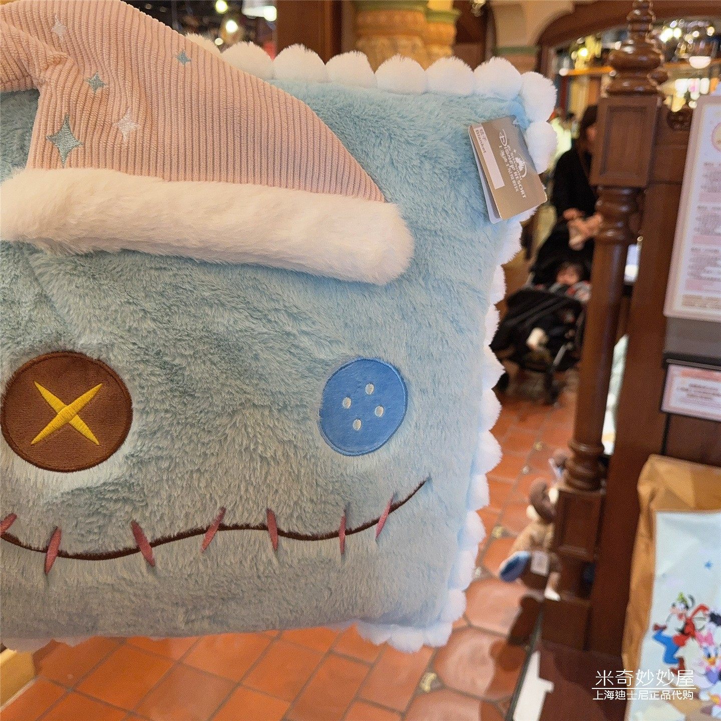 上海迪士尼代购2025冬日圣诞史迪奇朋友小金抱枕毛绒靠枕二合毛毯
