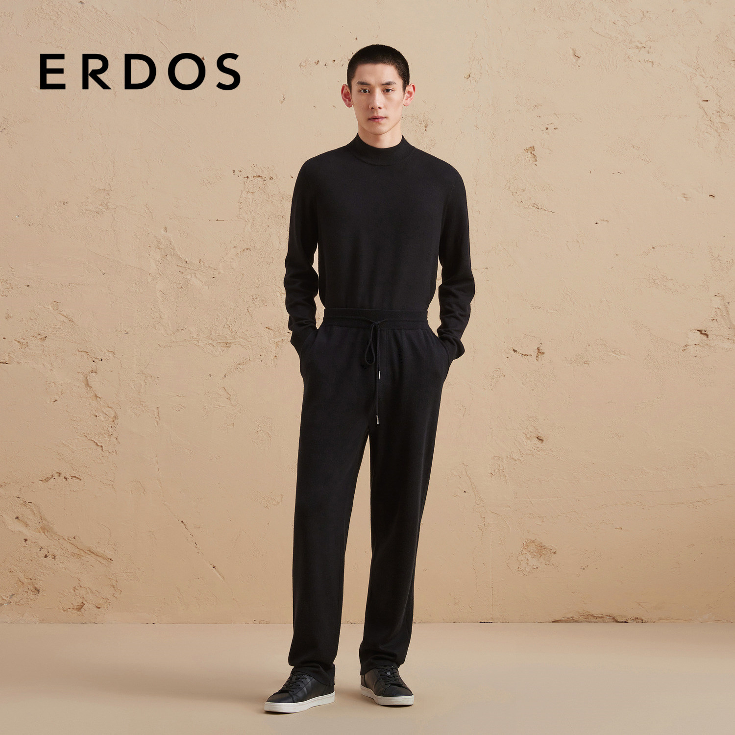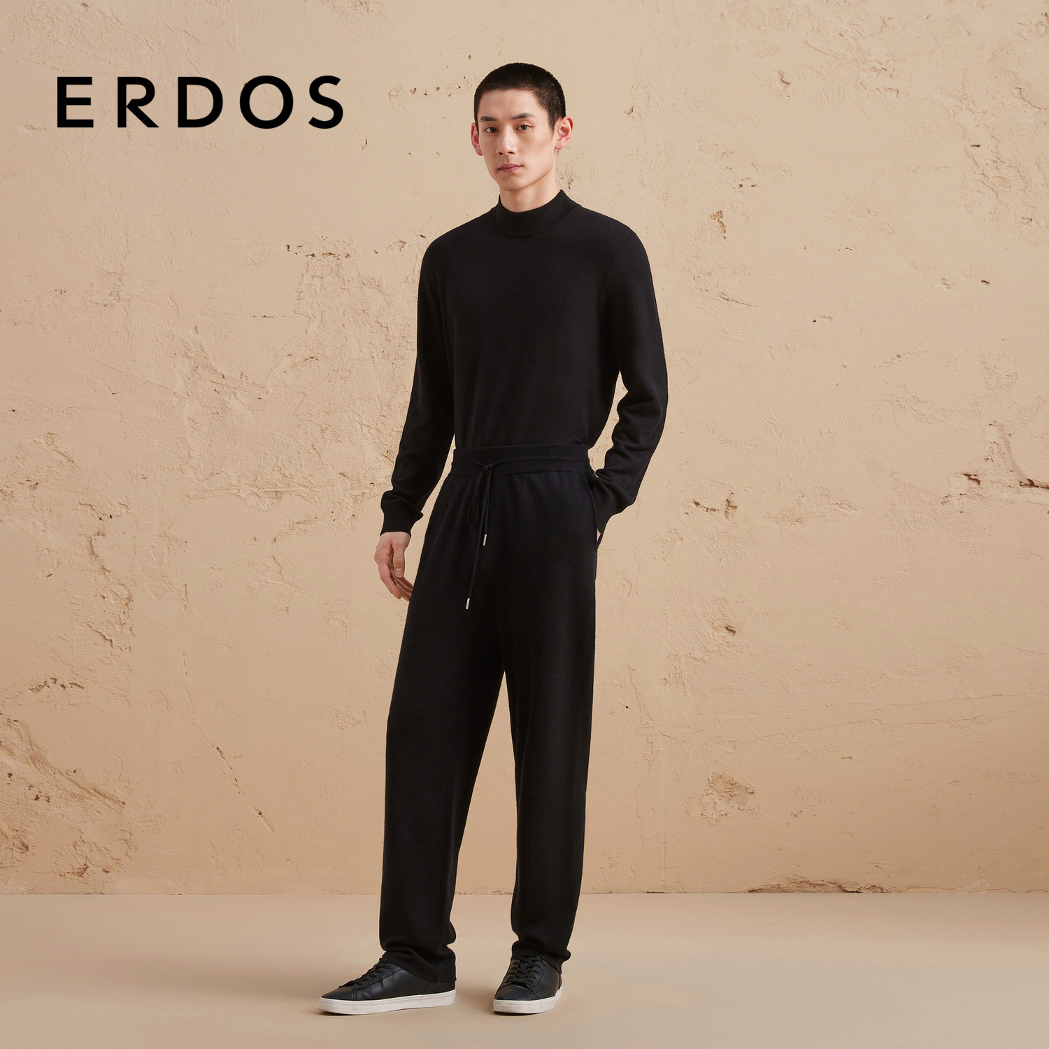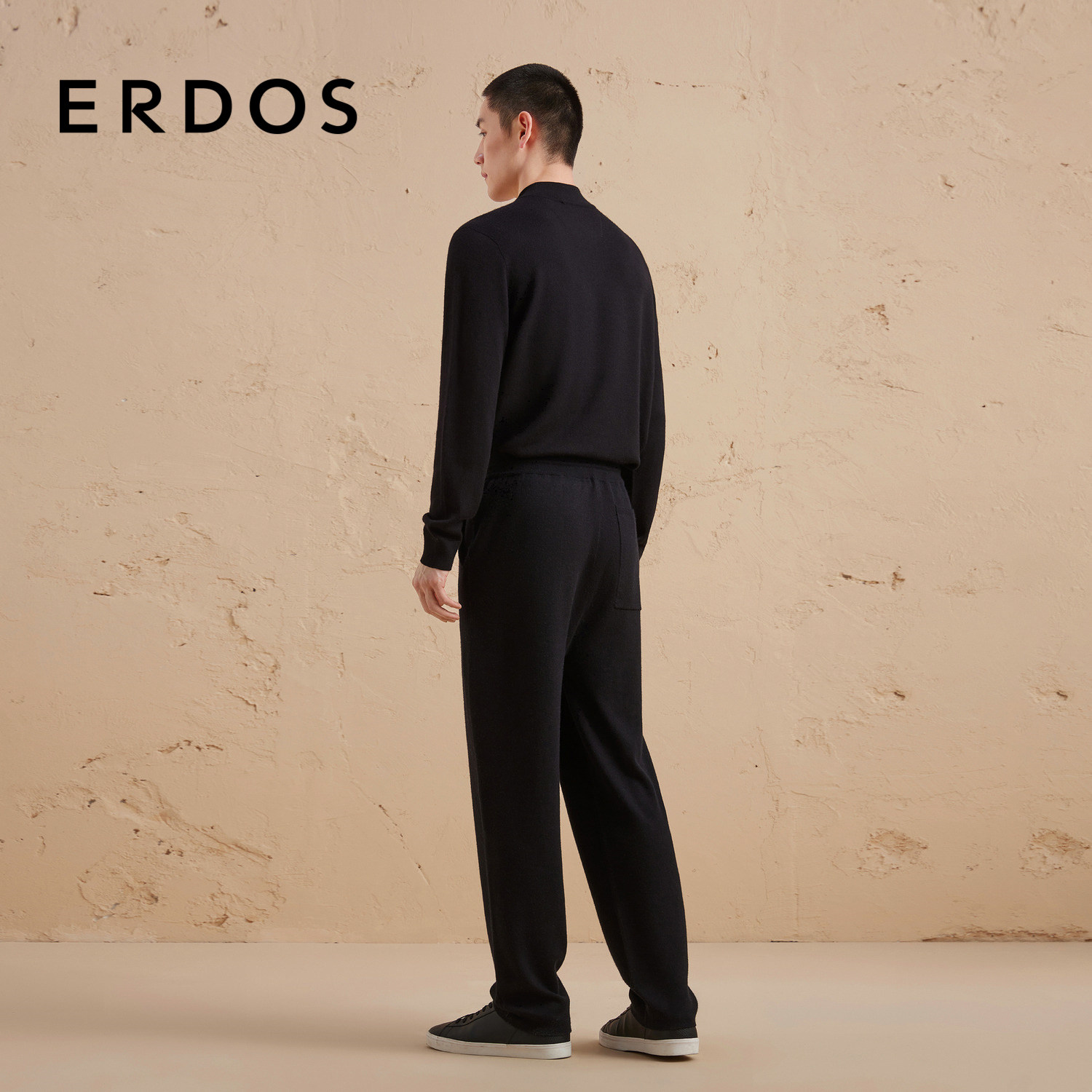 ERDOS 男装丝绒混纺慢跑裤秋冬黑色精纺双提长裤休闲轻运动