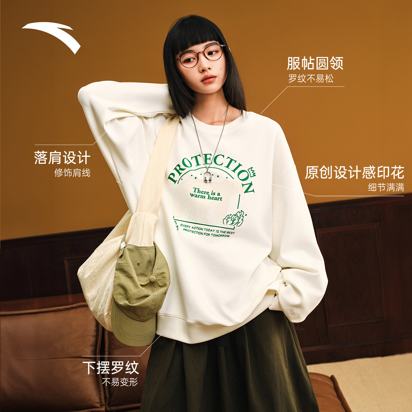 安踏潮流百搭休闲卫衣男女同款透气百搭情侣套头针织衫运动上衣