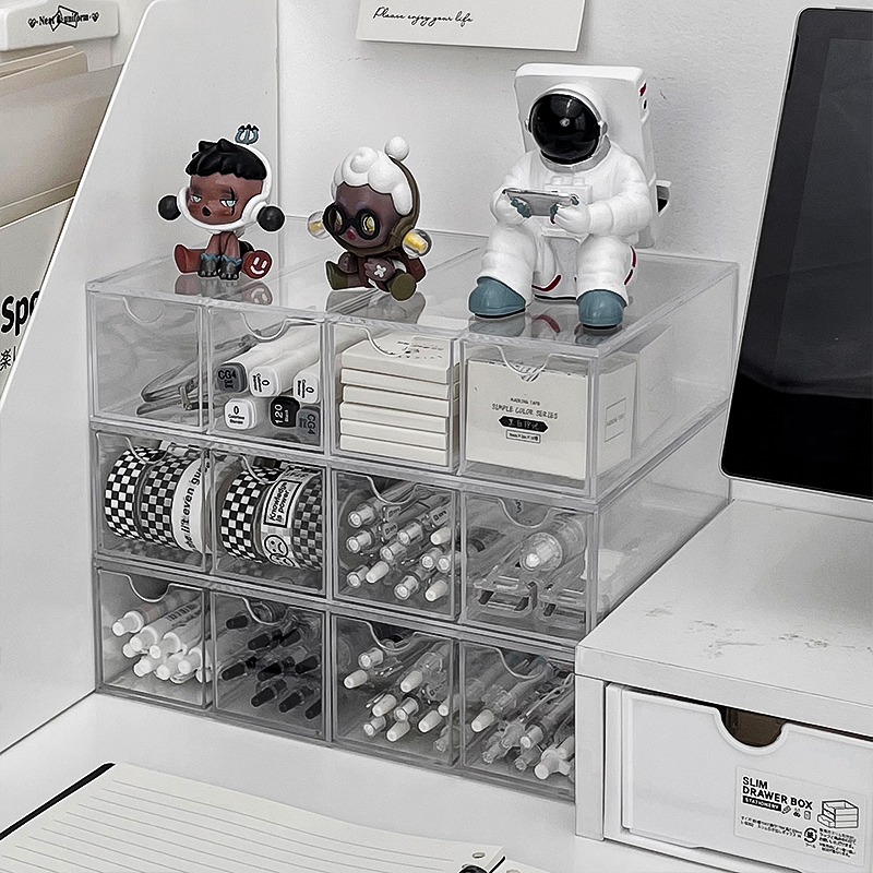 桌面笔筒文具收纳盒透明大容量桌上化妆品口红亚克力整理盒抽屉式