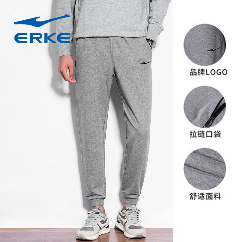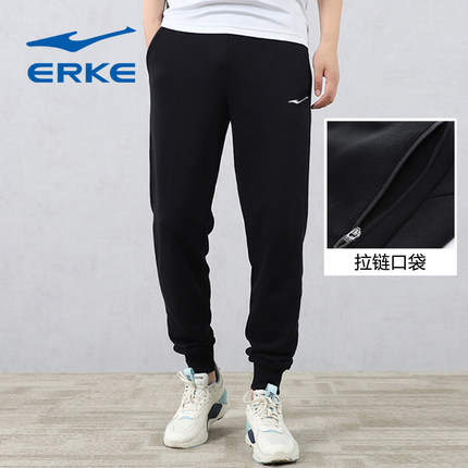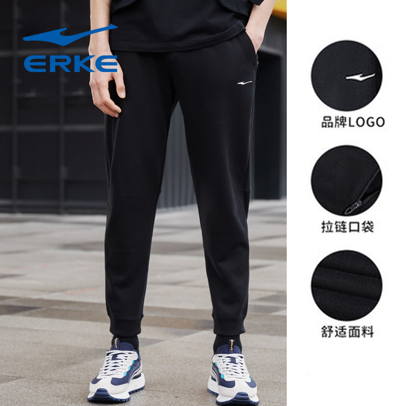 鸿星尔克运动裤男春季束脚休闲裤子黑色男士针织卫裤吸汗直筒长裤