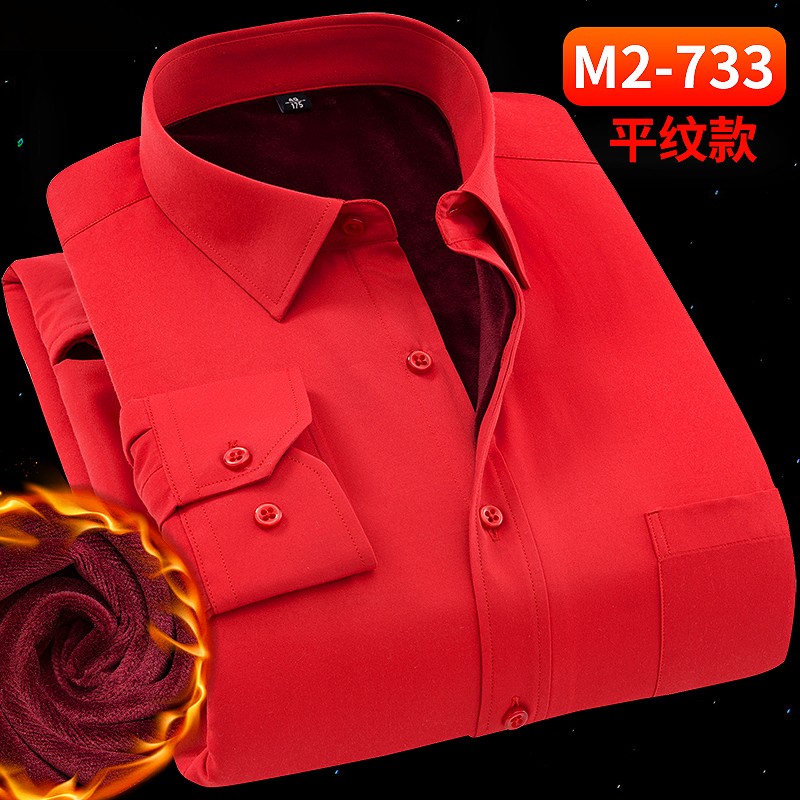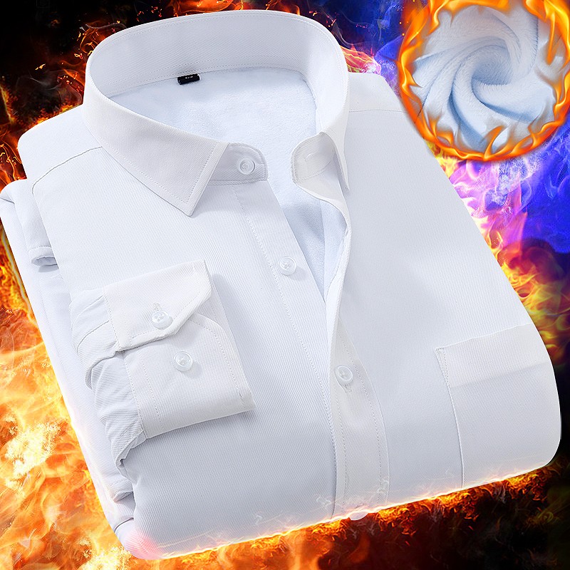 冬季加绒加厚保暖衬衫男长袖商务休闲新郎结婚衬衣男打底衫有大码