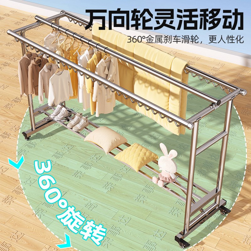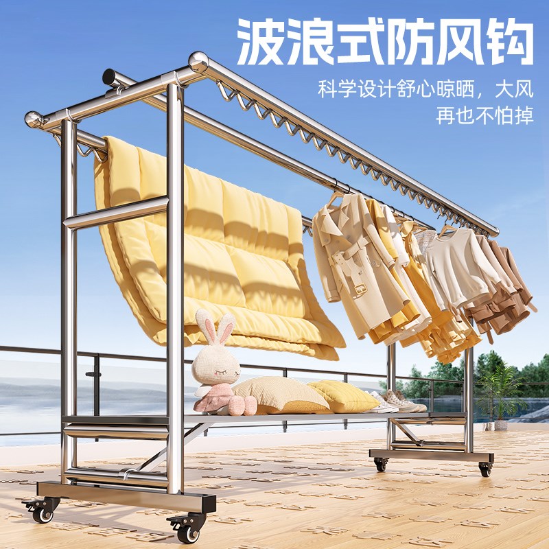 304不锈钢晾衣架落地家用阳台折叠凉衣架晒被子神器室内挂衣服架
