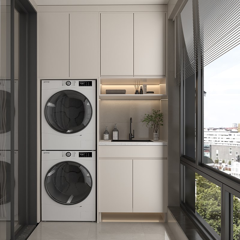蜂窝铝阳台洗衣机柜组合双机洗衣洪干机叠放一体储物柜定制台盆柜