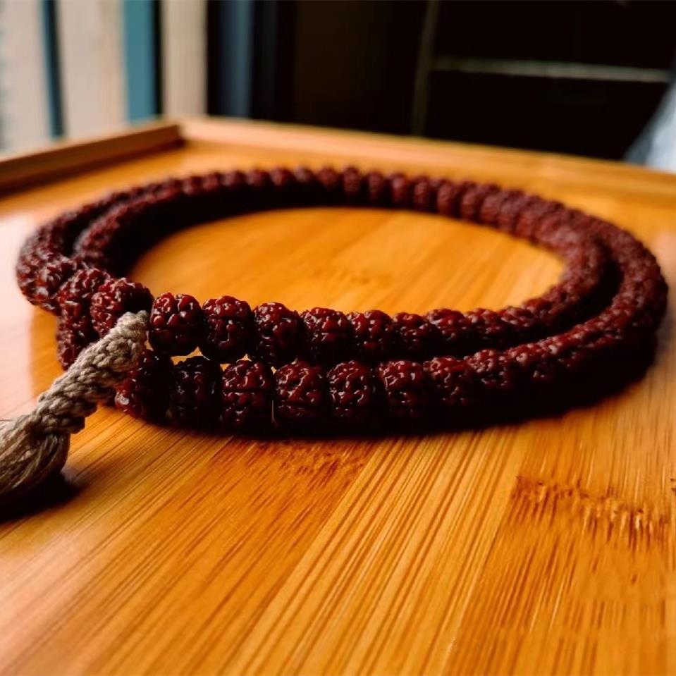 机刷包浆成品小金刚108颗玉化菩提五瓣矮桩藏式文玩佛珠男女手串