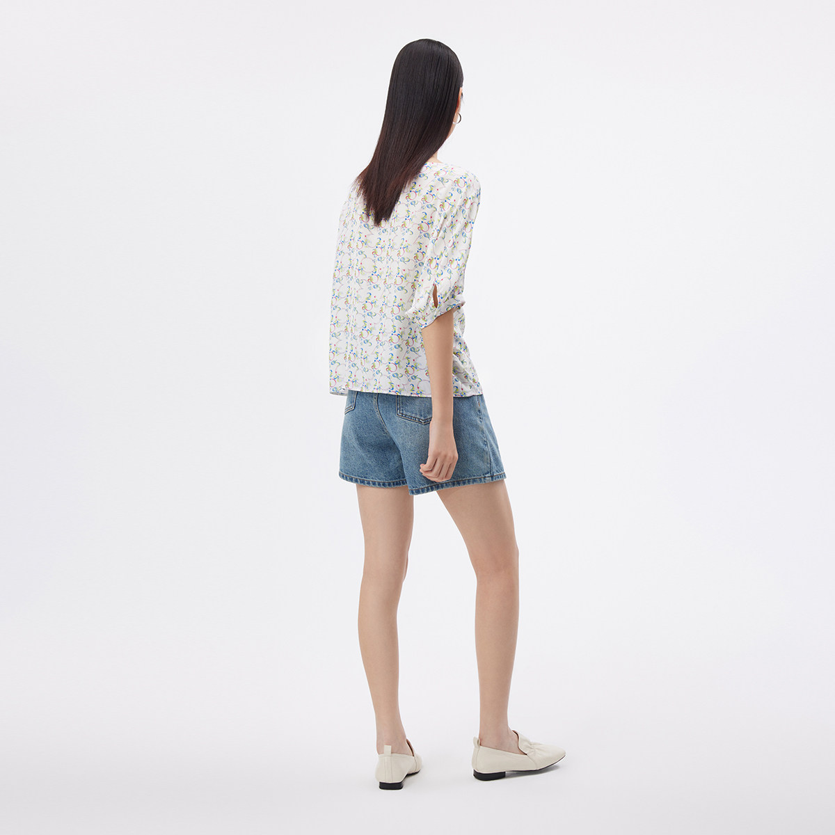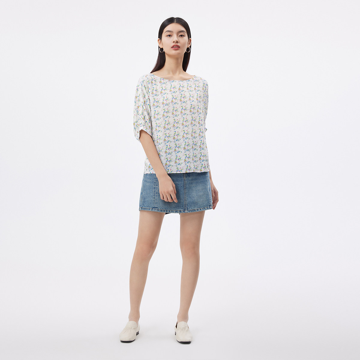 播2023夏季商场同款数字光影印花复古兜袖花式上衣女BDQ2HD1122