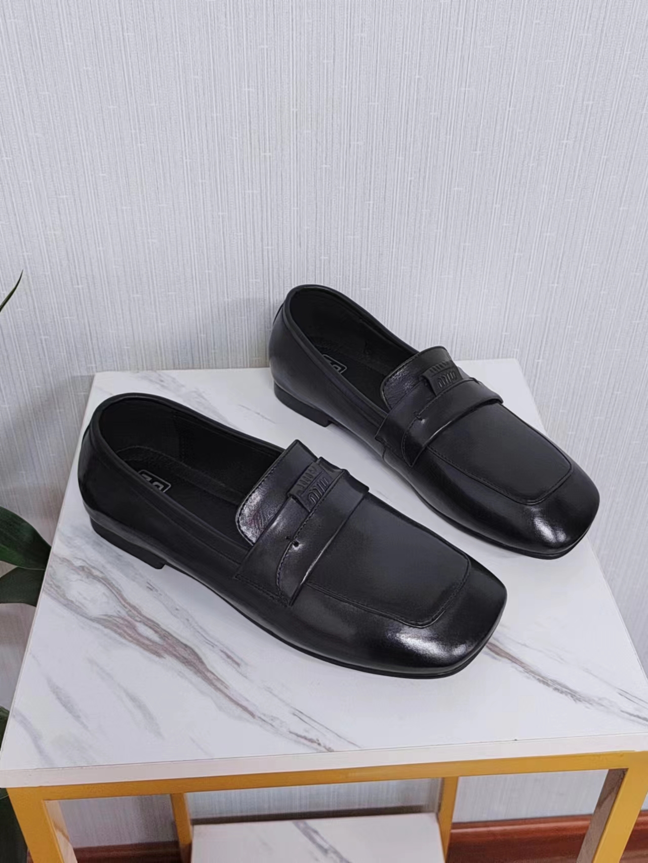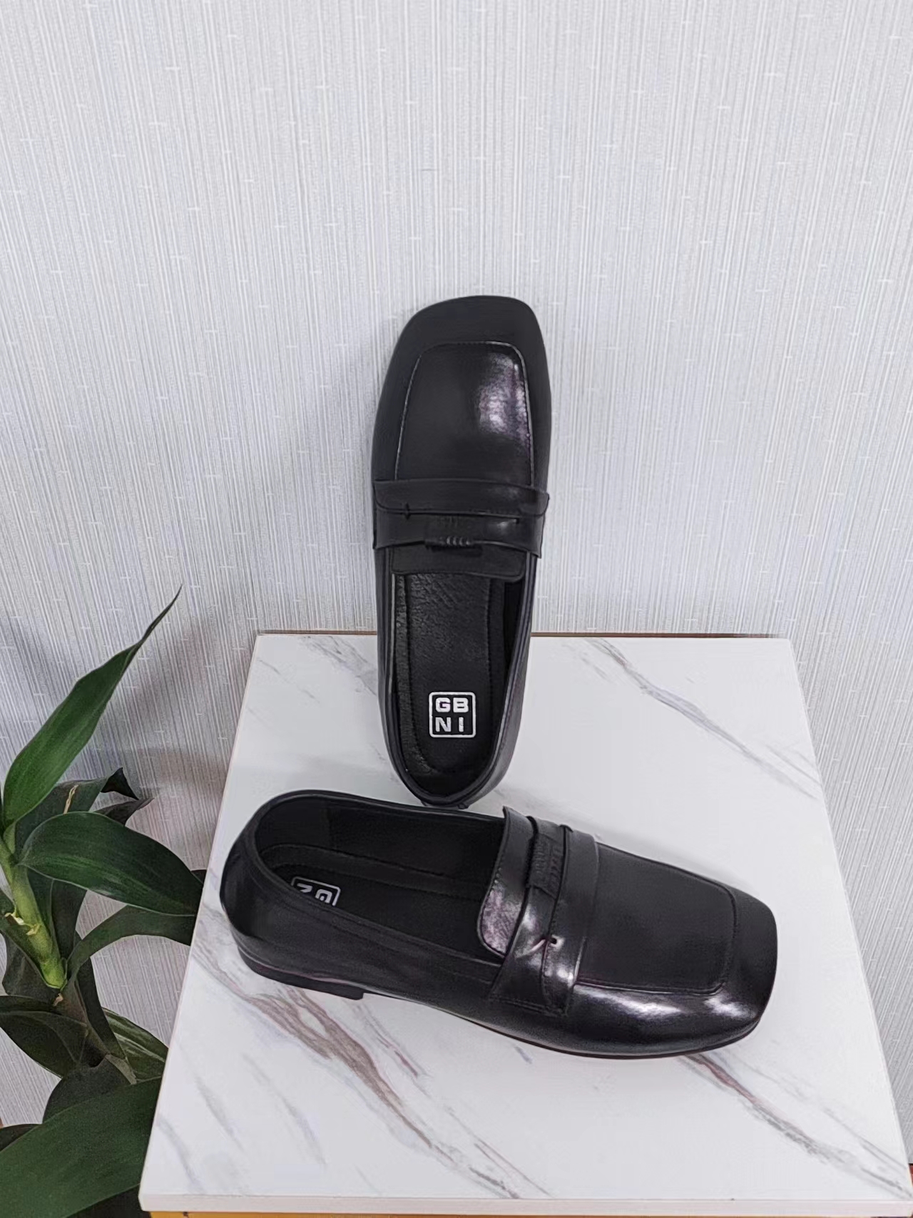 胎牛皮2025春季新款真皮平底方头时尚单鞋女小皮鞋百搭乐福鞋