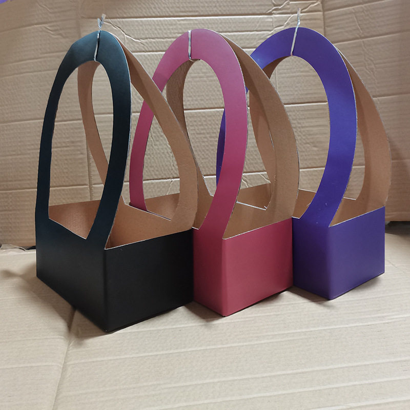 牛皮纸手提花篮花束包装盒