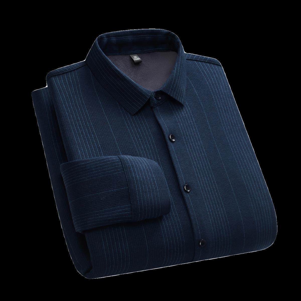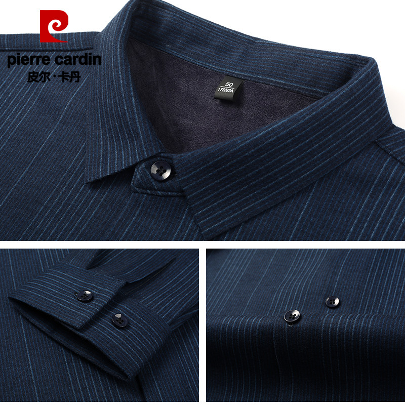 皮尔卡丹男士冬季保暖衬衫长袖加绒加厚商务休闲中老年爸爸装衬衣