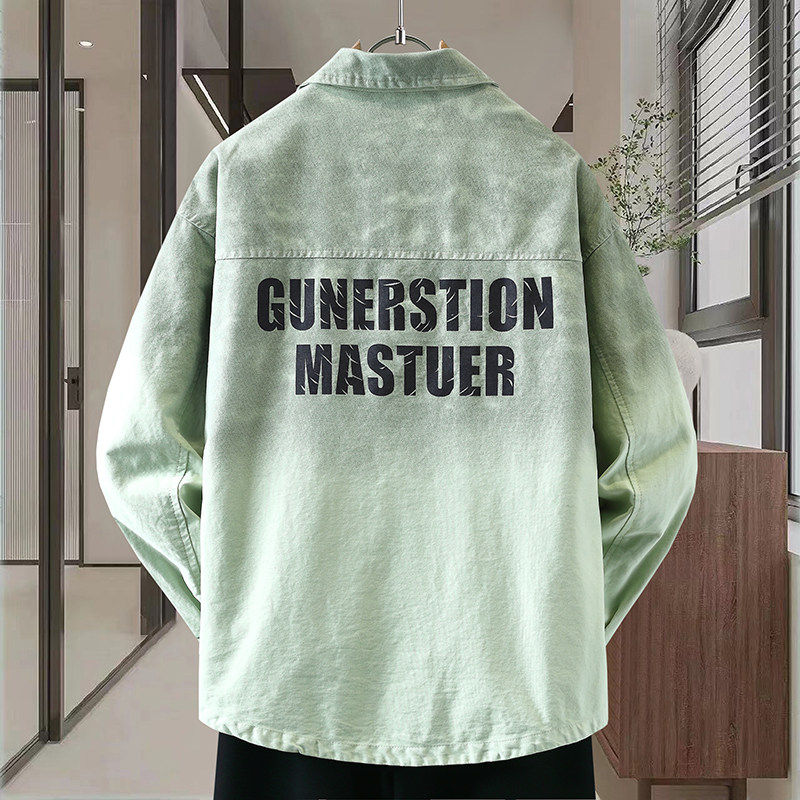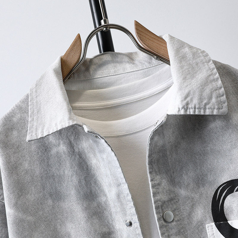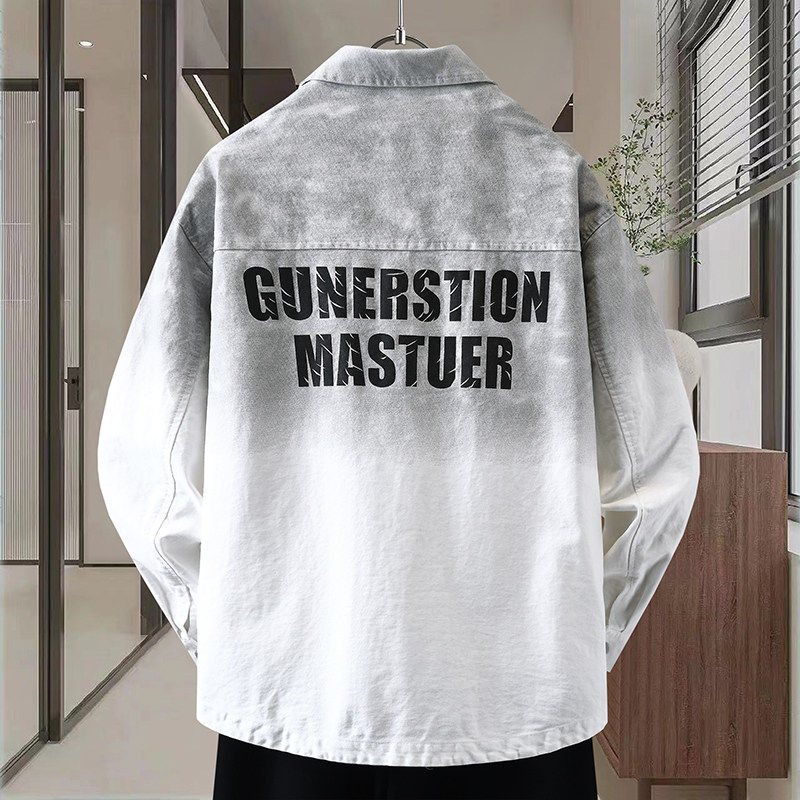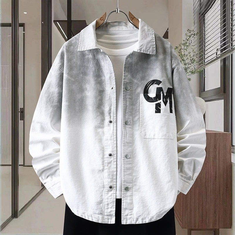 渐变色长袖衬衫男生春秋季青少年初高中学生帅气纯棉翻领衬衣外套
