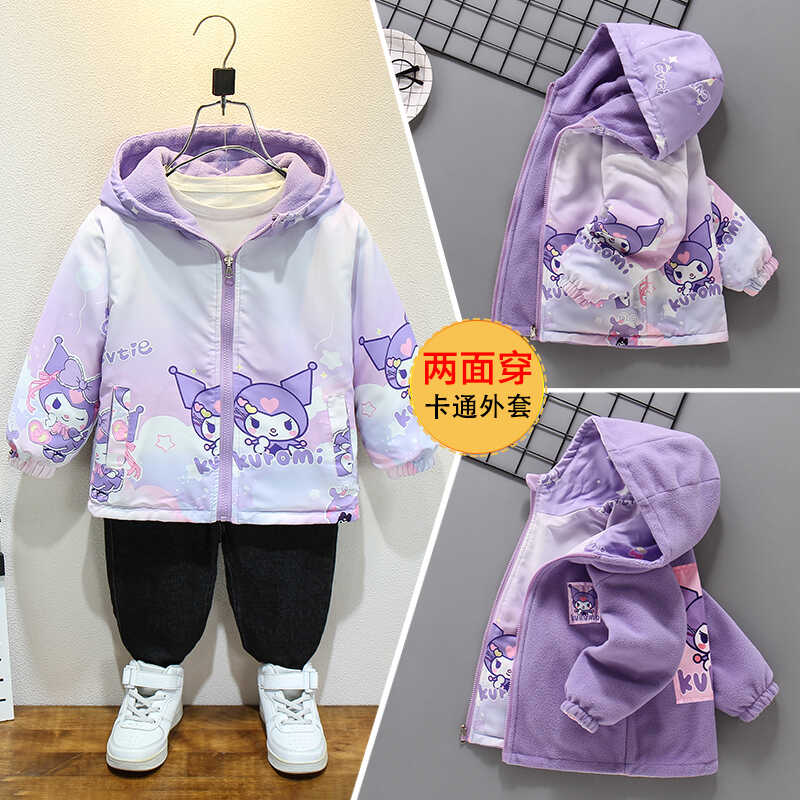 女童春秋外套加绒冲锋衣2025新款儿童双面穿防风上衣中大童两面穿