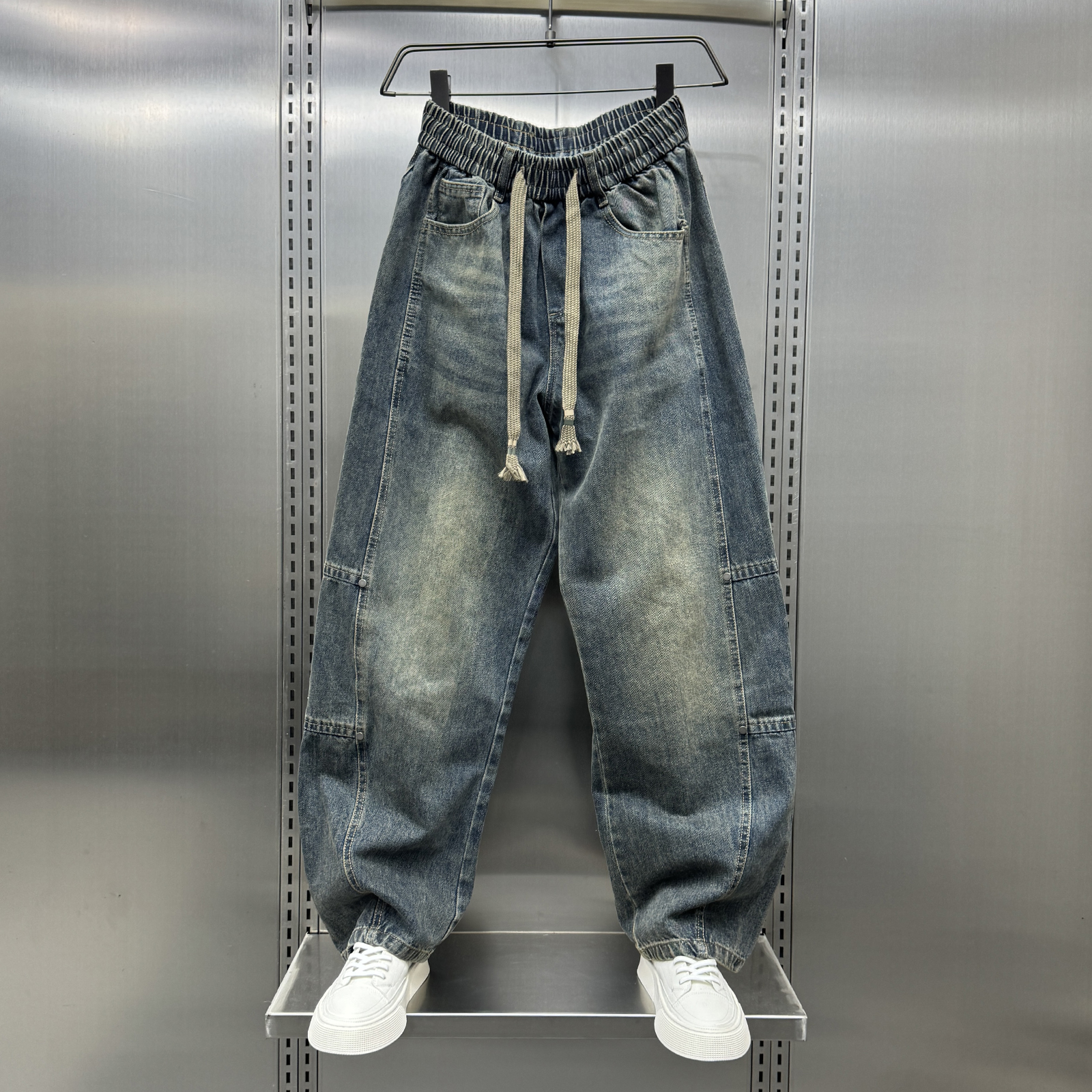 2025秋冬水洗复古直筒牛仔裤男美式水洗痞帅休闲裤宽松百搭弯刀裤
