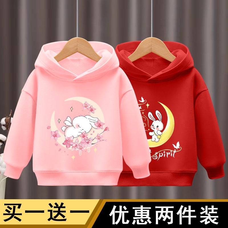 女童套头卫衣连帽洋气春秋装2025新款儿童套头衫宝宝宽松外套上衣