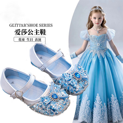 真皮女童鞋子爱莎公主水晶鞋2025春夏新款儿童小皮鞋艾莎蓝色单鞋
