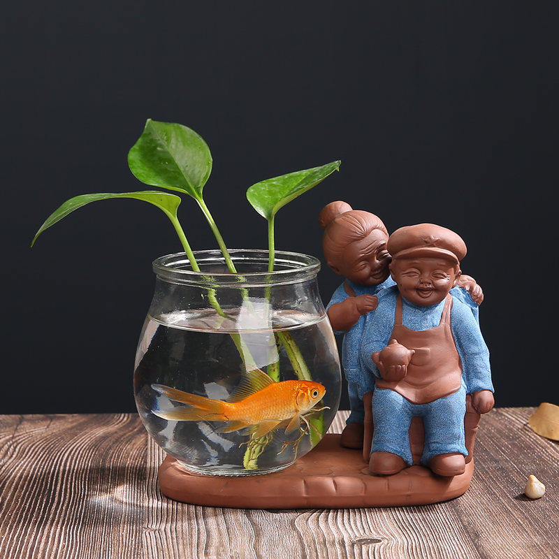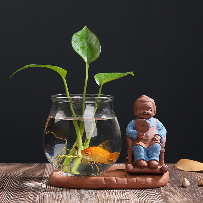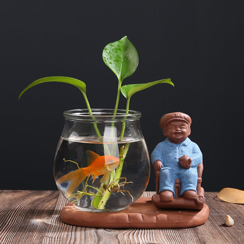创意水养植物绿萝水培花瓶玻璃透明花盆陶瓷器皿插花瓶子桌面h摆