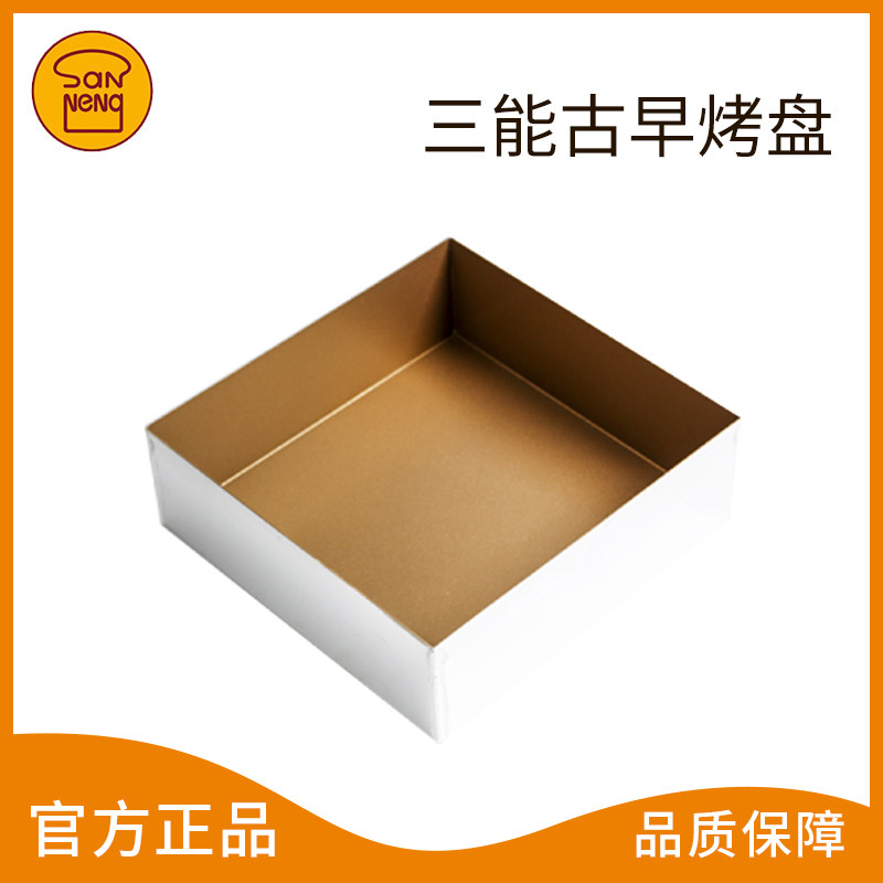 三能加高正方形金盘蛋糕卷模金色不沾加深古早蛋糕烤盘烘焙模具