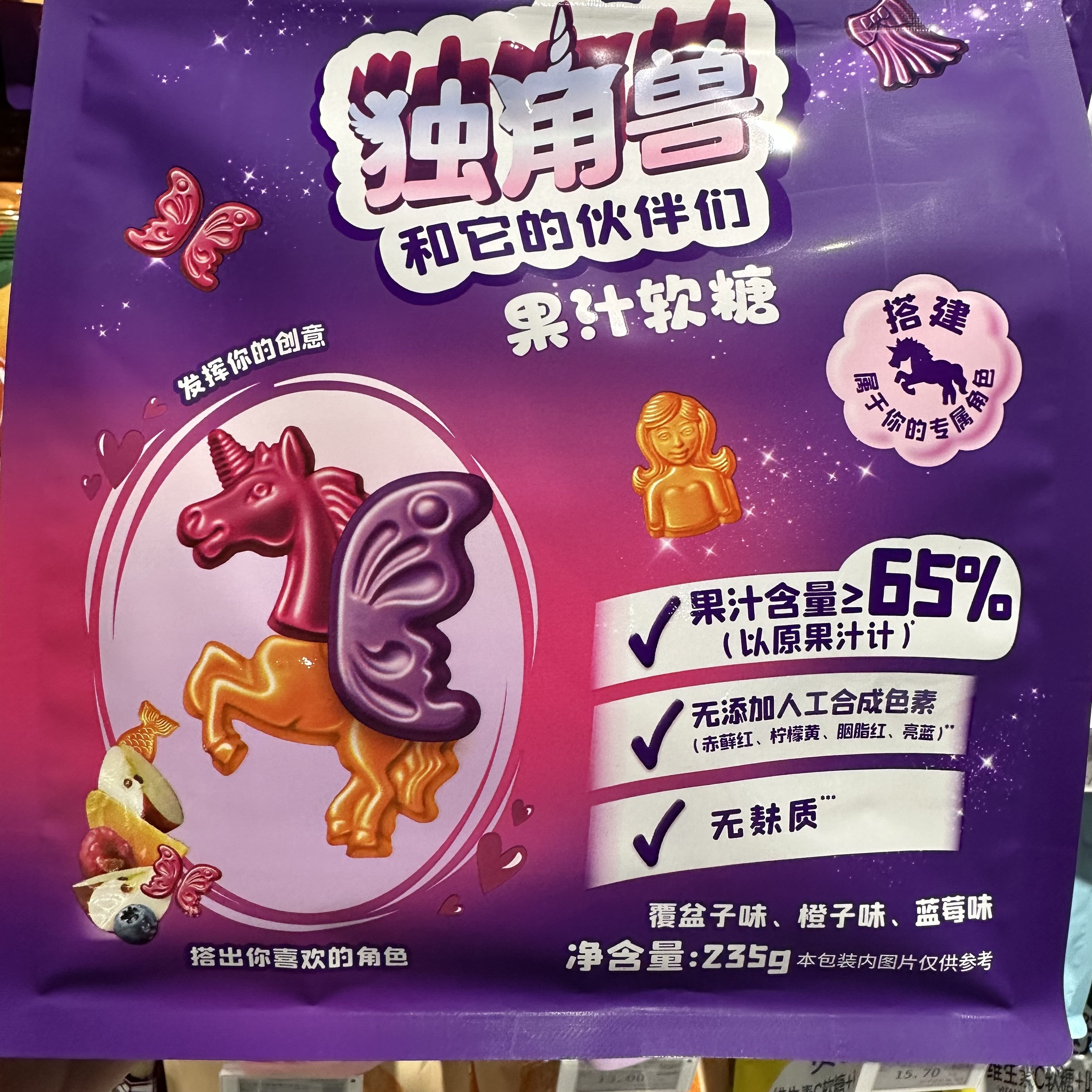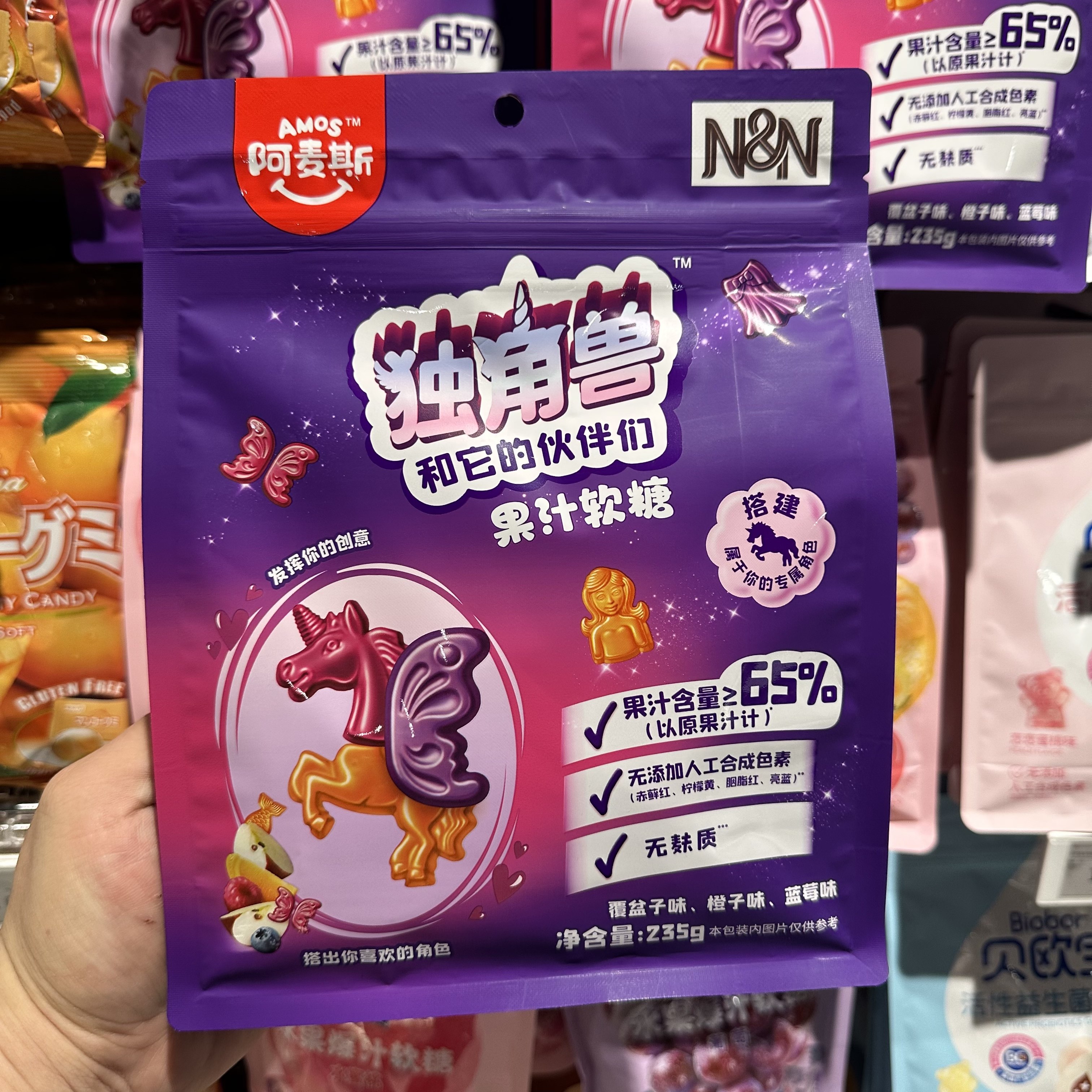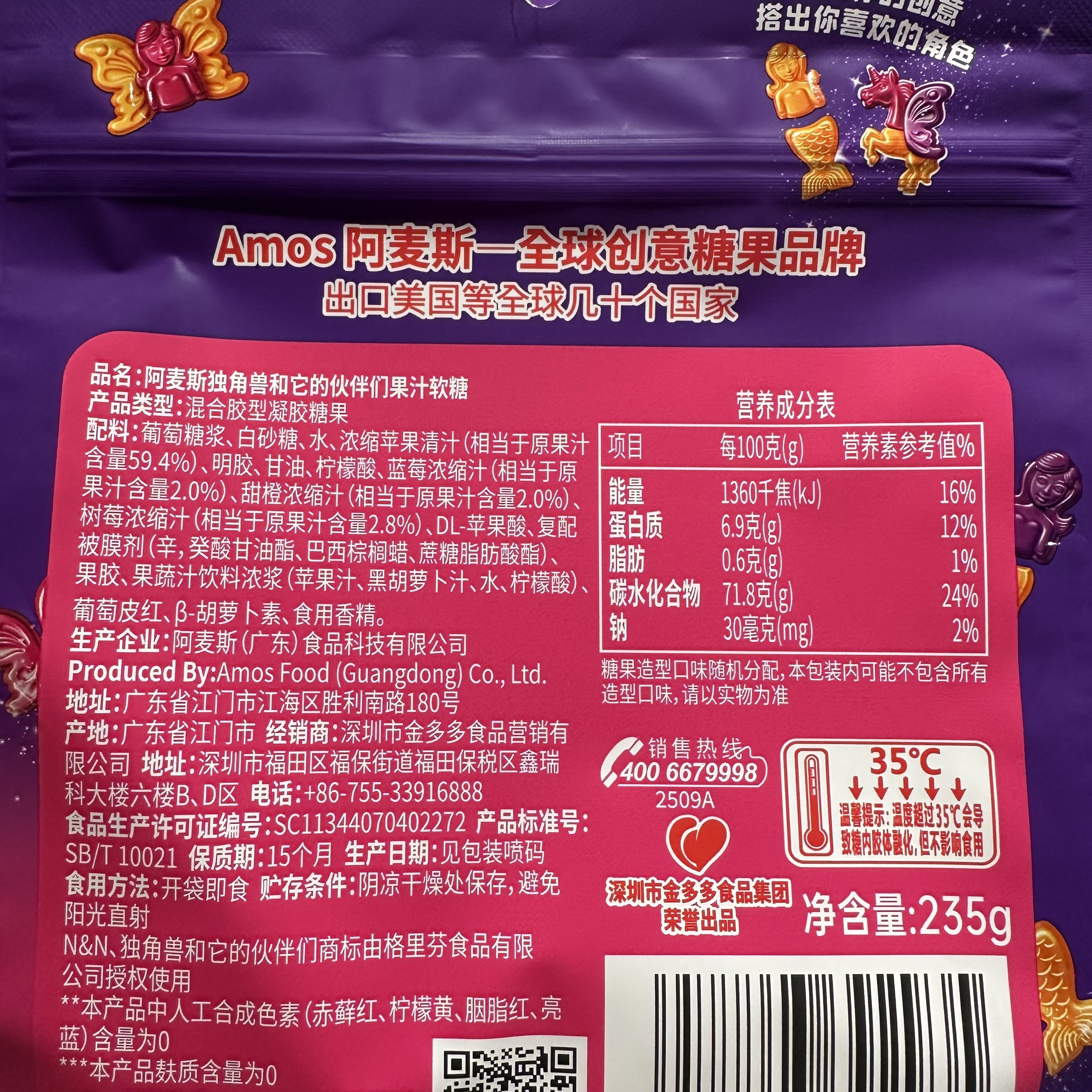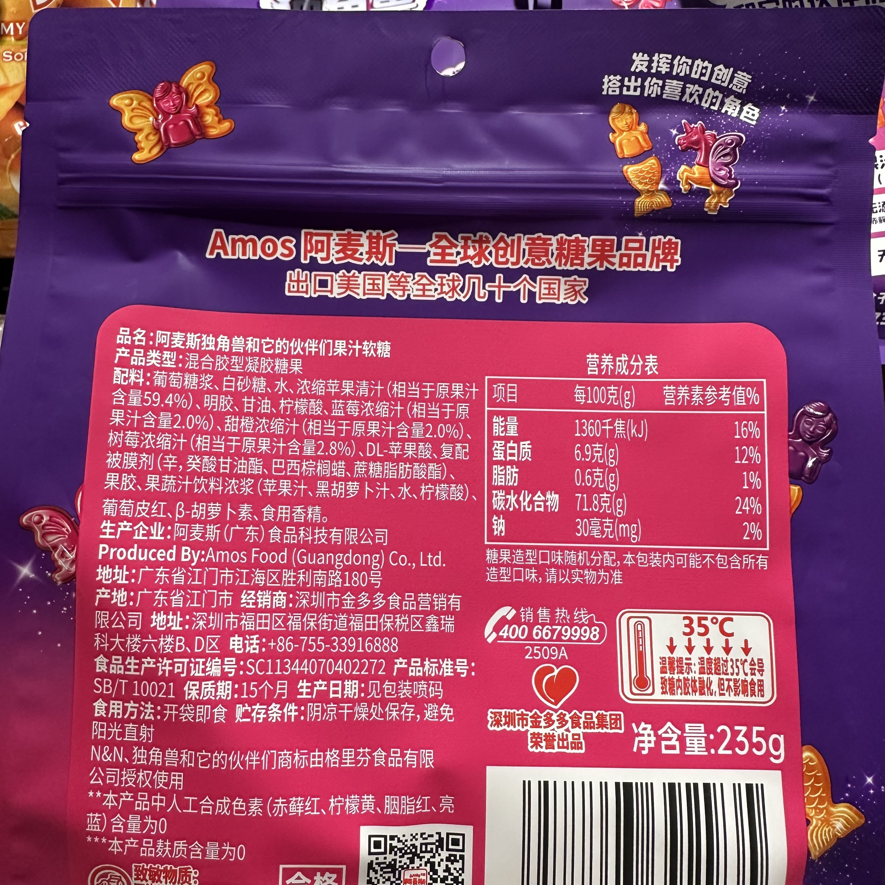 胖东来代购 阿麦斯独角兽和它的伙伴们果汁软糖235g0添加色素糖果