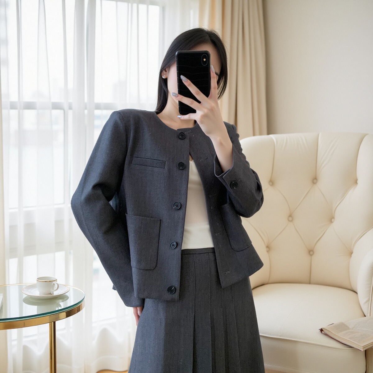 小禾套装西装外套半裙两件套A字裙中长半身裙女2025早秋新款秋天