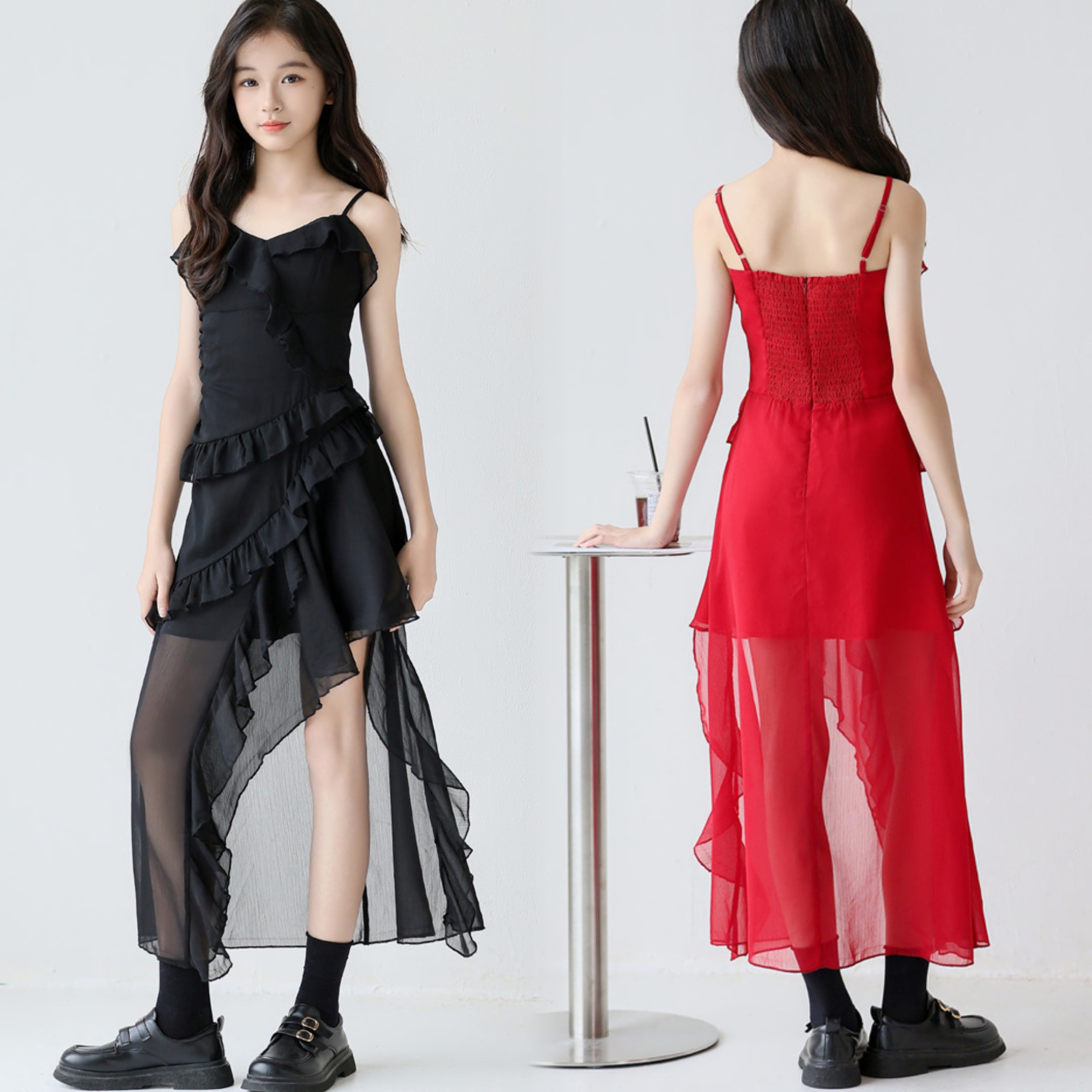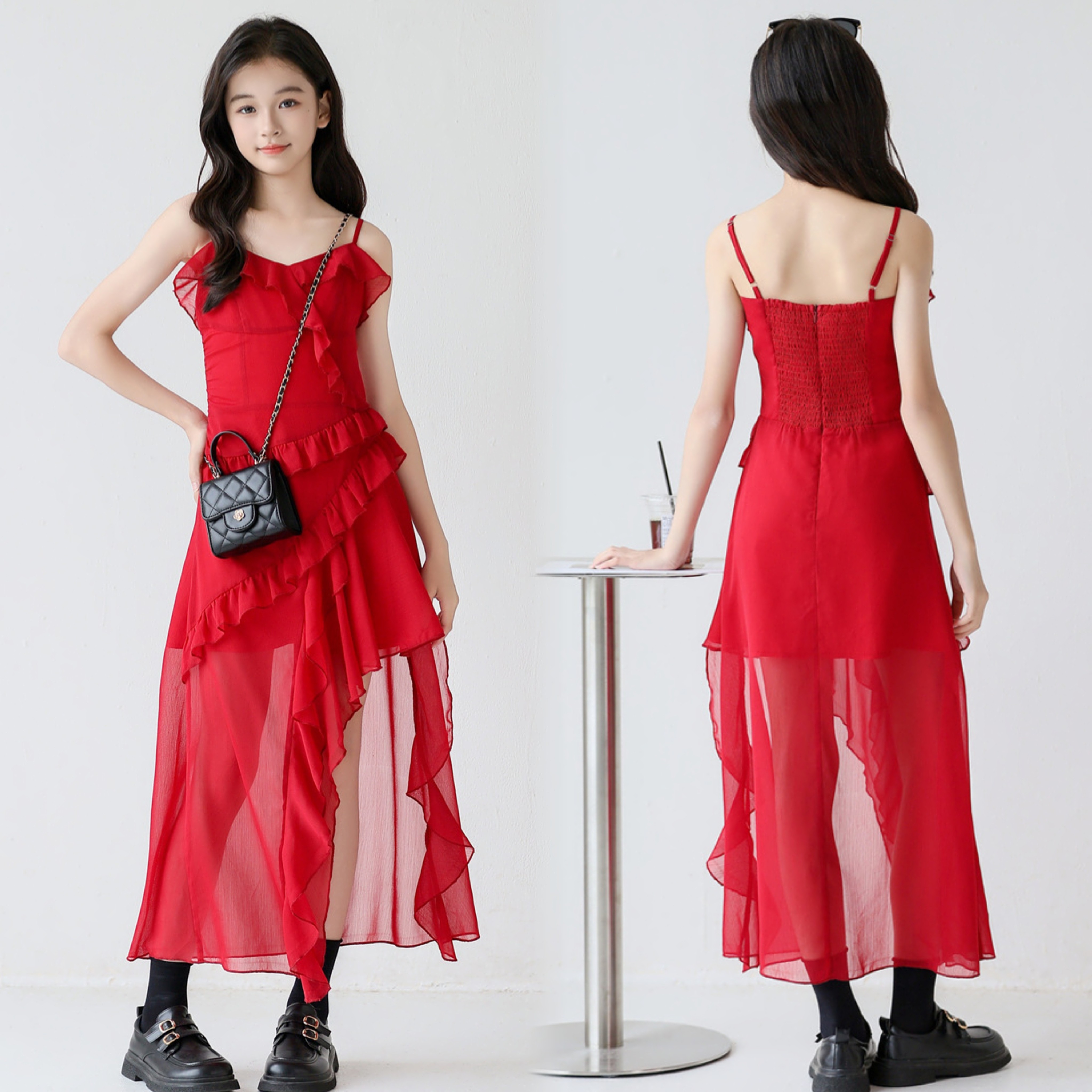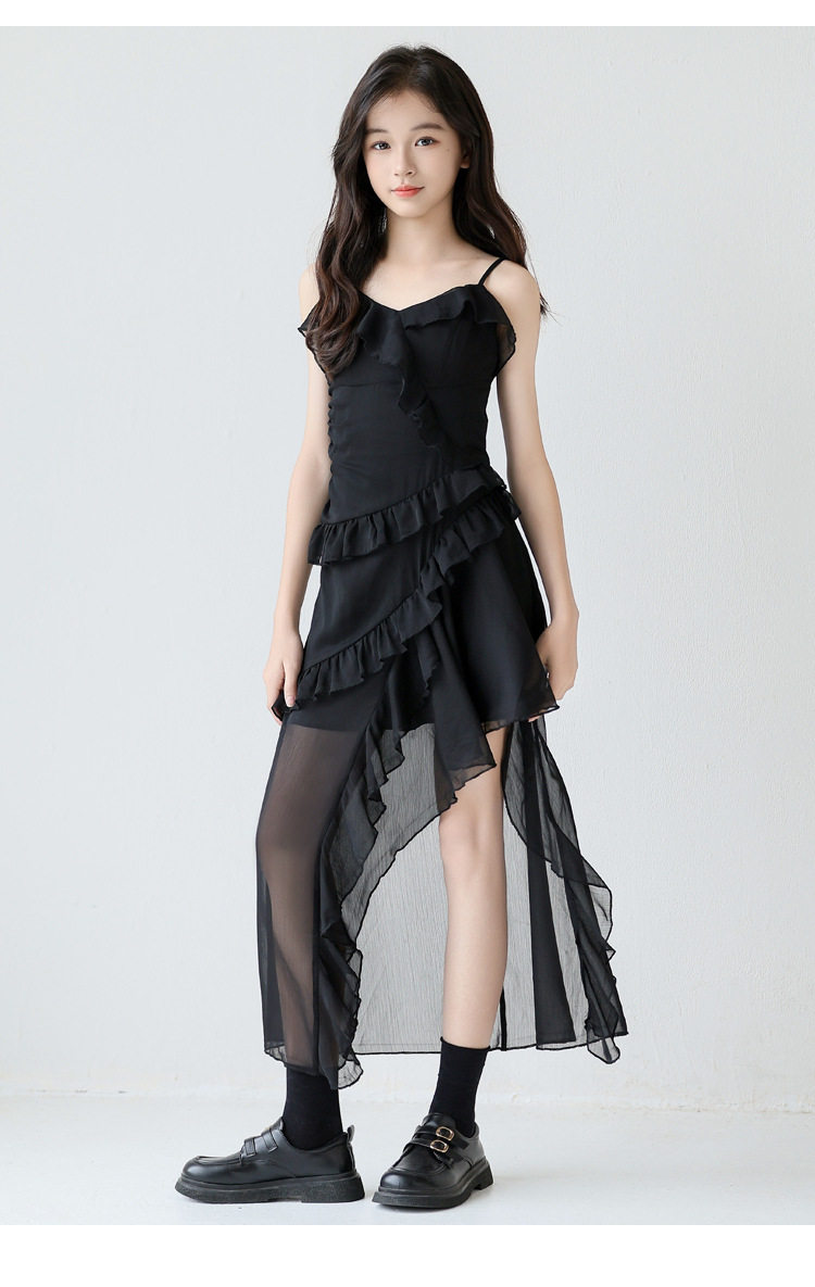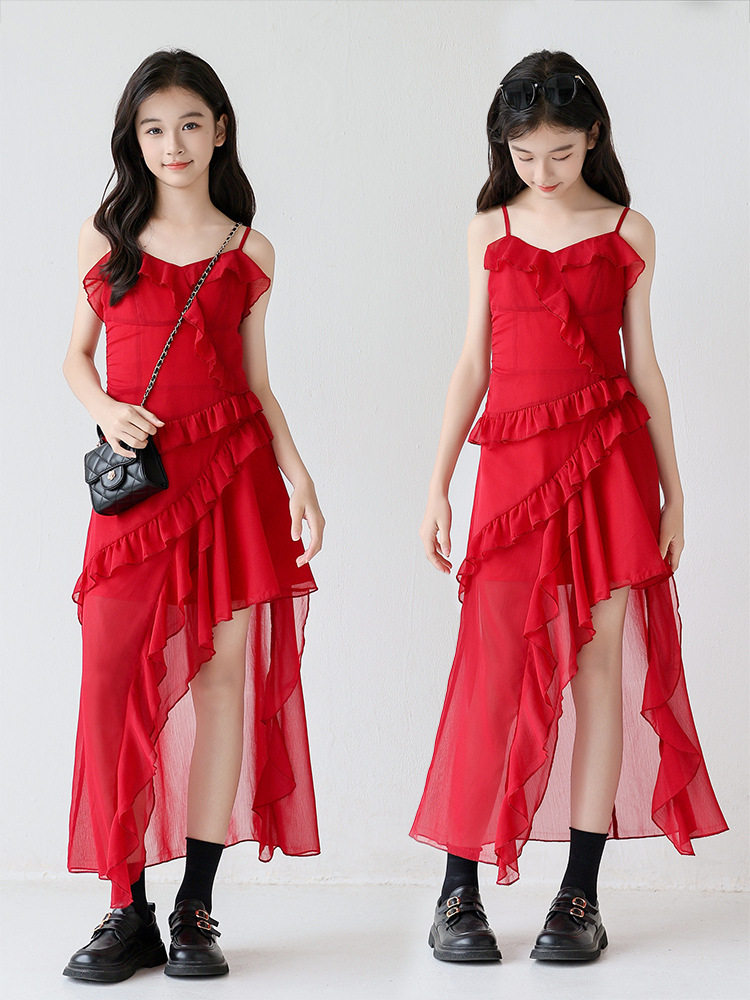亲子装吊带裙大童不规则雪纺裙子2026新款辣妹装女孩度假沙滩裙子