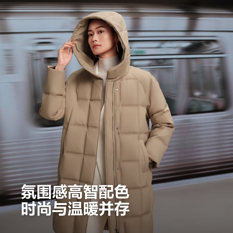 波司登2025冬新款经典商务品质鹅绒女中长款连帽羽绒服B250244164