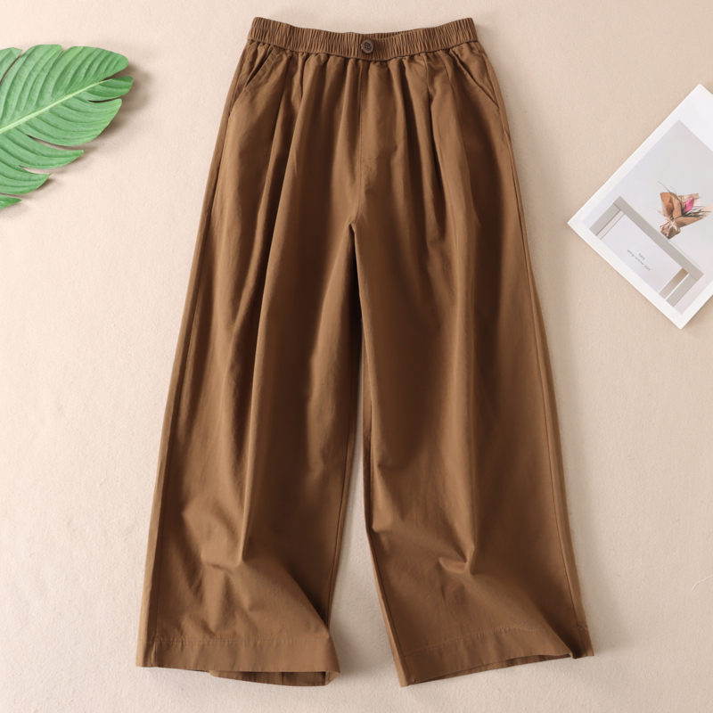 韩版简约气质水洗棉阔腿裤春夏时尚高腰百搭宽松休闲九分裤女X248