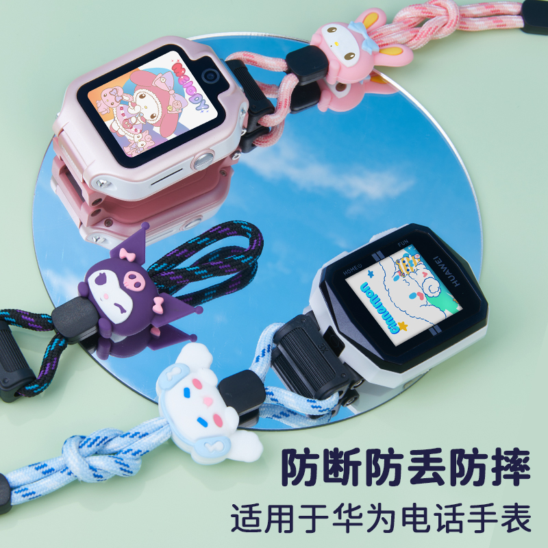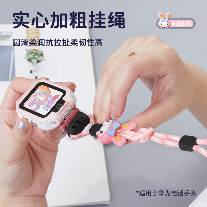 适用华为儿童电话手表5X/5Xpro卡通挂脖套绳4X/4Pro/3X/3Pro/3S透色保护壳加粗尼龙库洛咪美乐迪挂绳表带配件