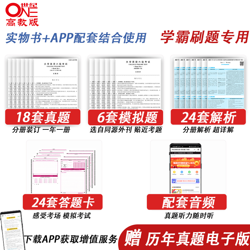 官网【备考2025年12月】英语六级21套真题+6套模拟黄皮书英语六级真题卷学霸狂练 6级历年真题试卷专项训练考试听力词汇阅读资料