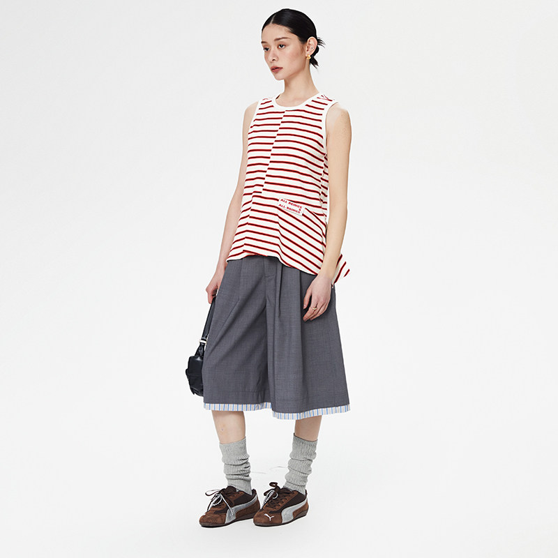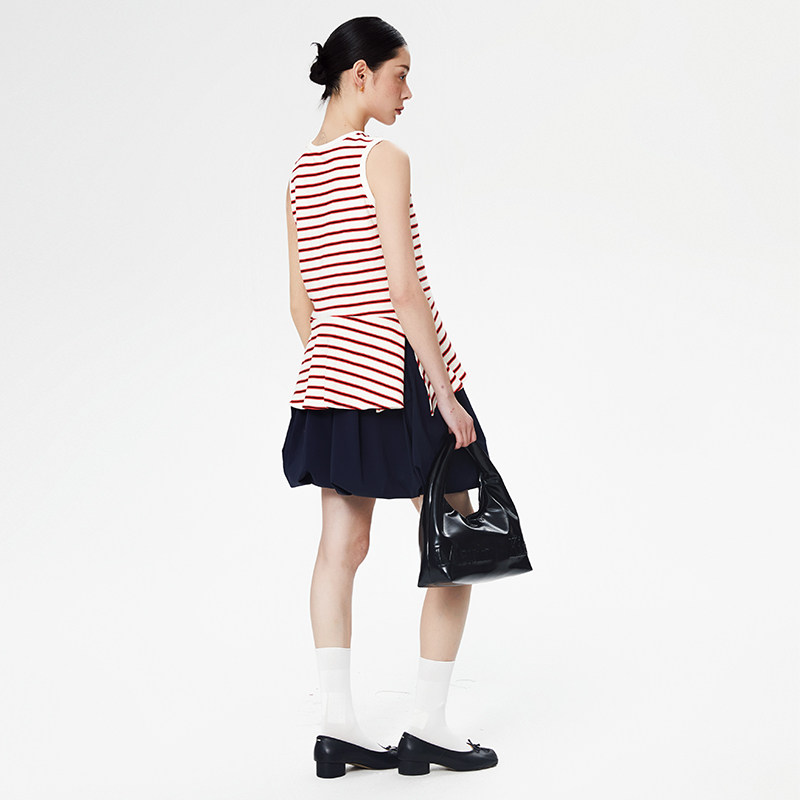 ALL BEINGS2025SS时尚轻薄设计感红白条纹裙摆外穿背心女夏季新款