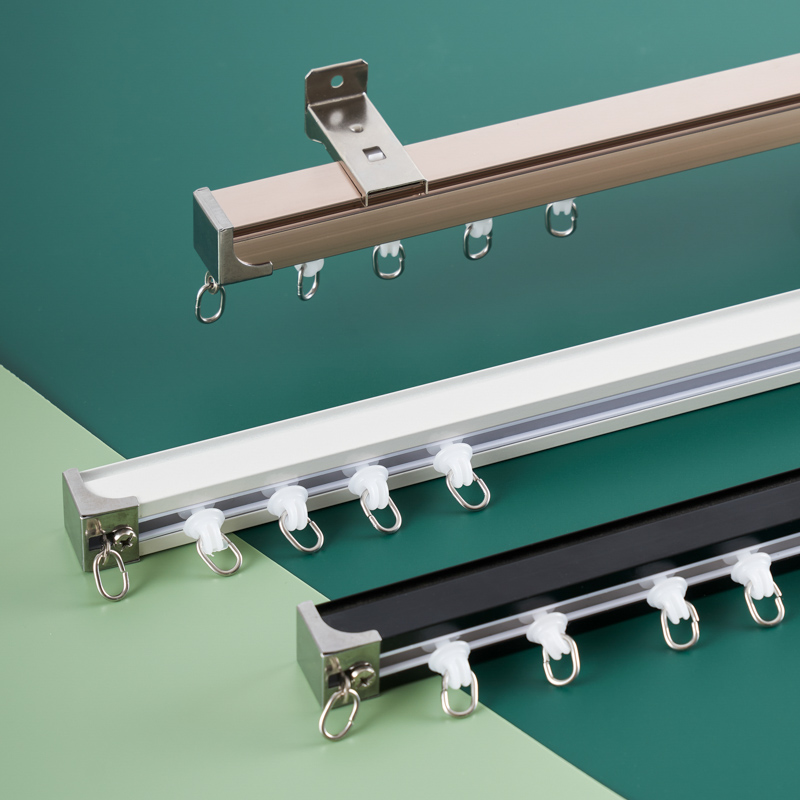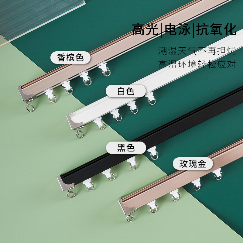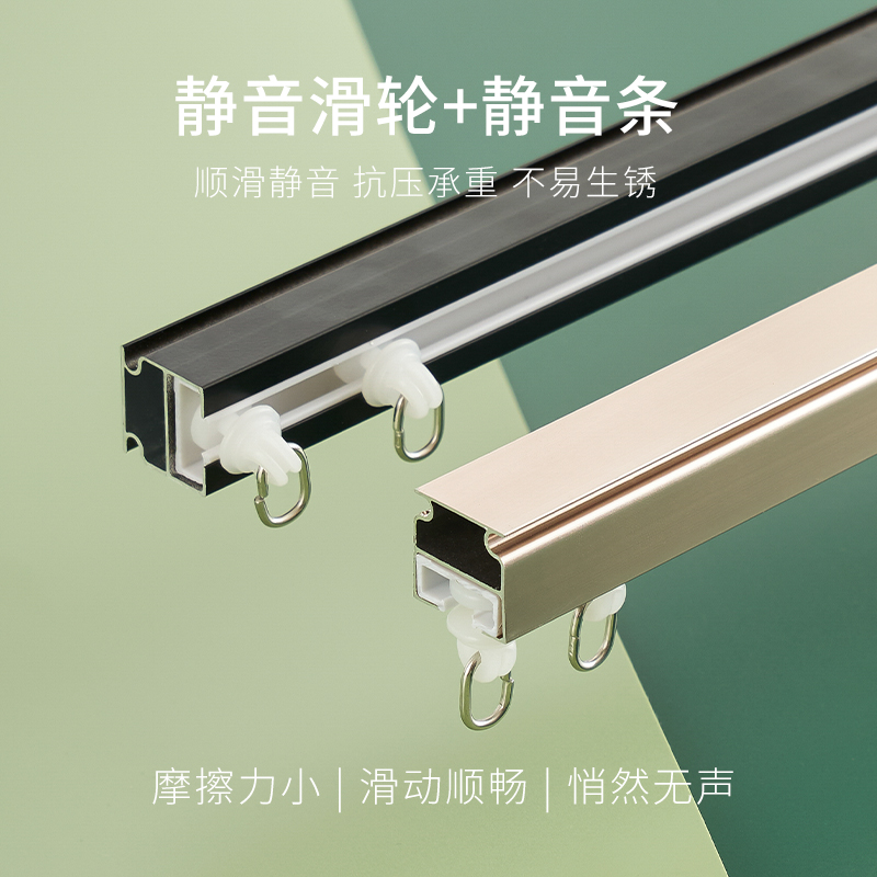 静音窗帘轨道窗帘杆顶装侧装单轨双轨直轨铝合金导轨路轨滑道消音