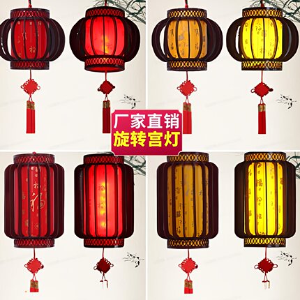 2025实木旋转灯笼仿古典阳台茶楼新中式吊灯中国风木制宫灯走马灯