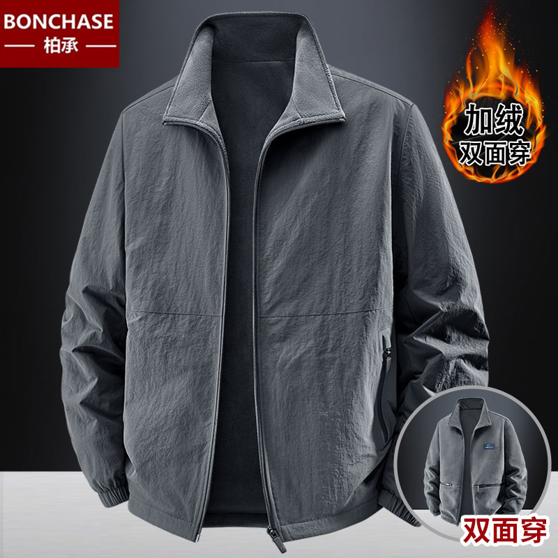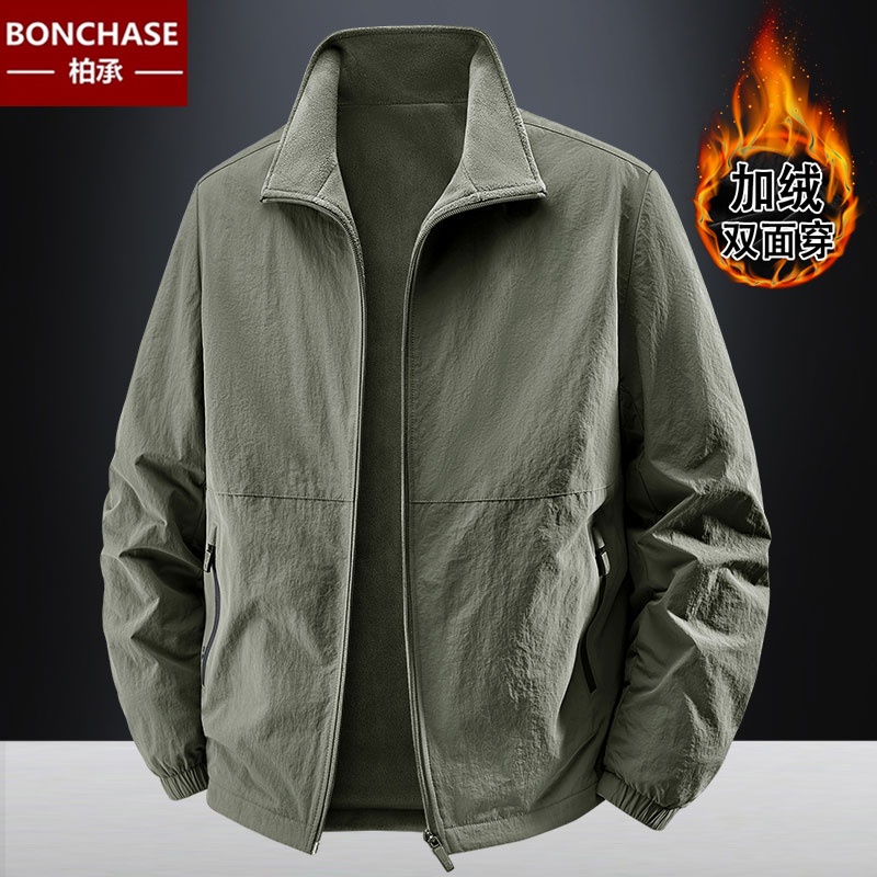 双面穿棉衣男冬季加绒加厚保暖棉服外套男士立领防风防水冲锋夹克
