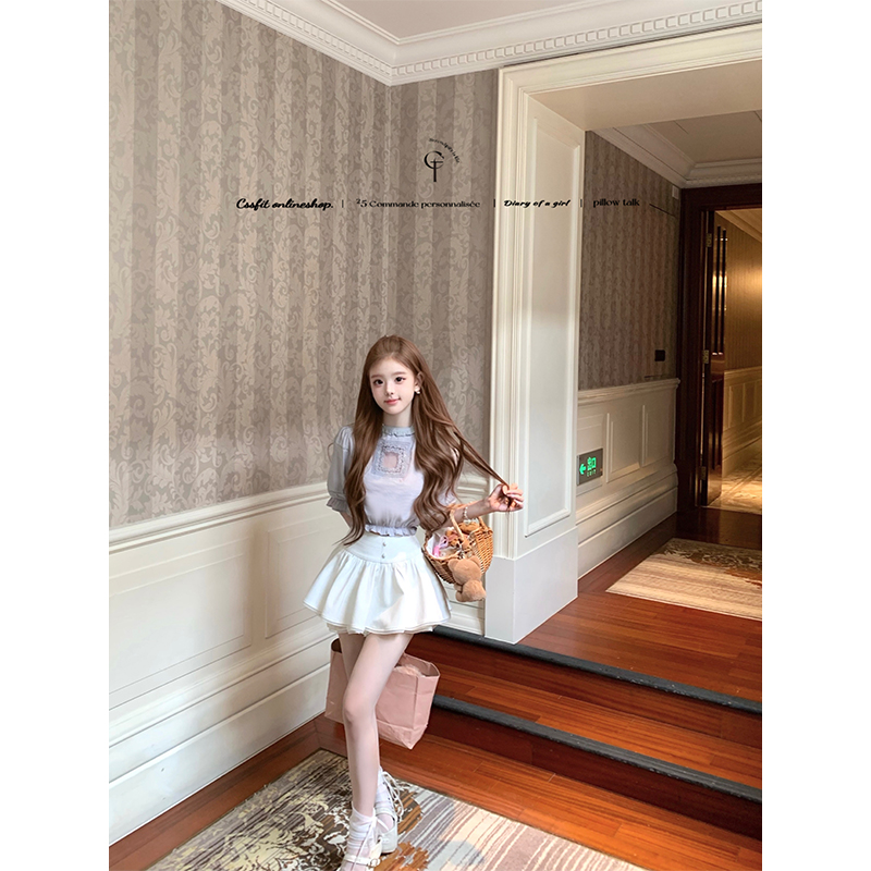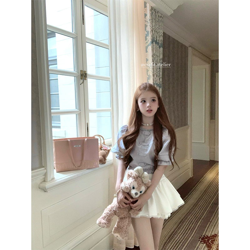 迟伞伞蓝灰色两穿拼接衬衫百褶裙