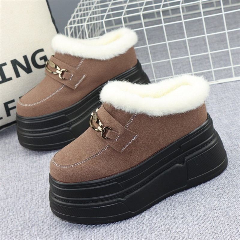 超高跟12cm一脚蹬加绒保暖棉拖鞋