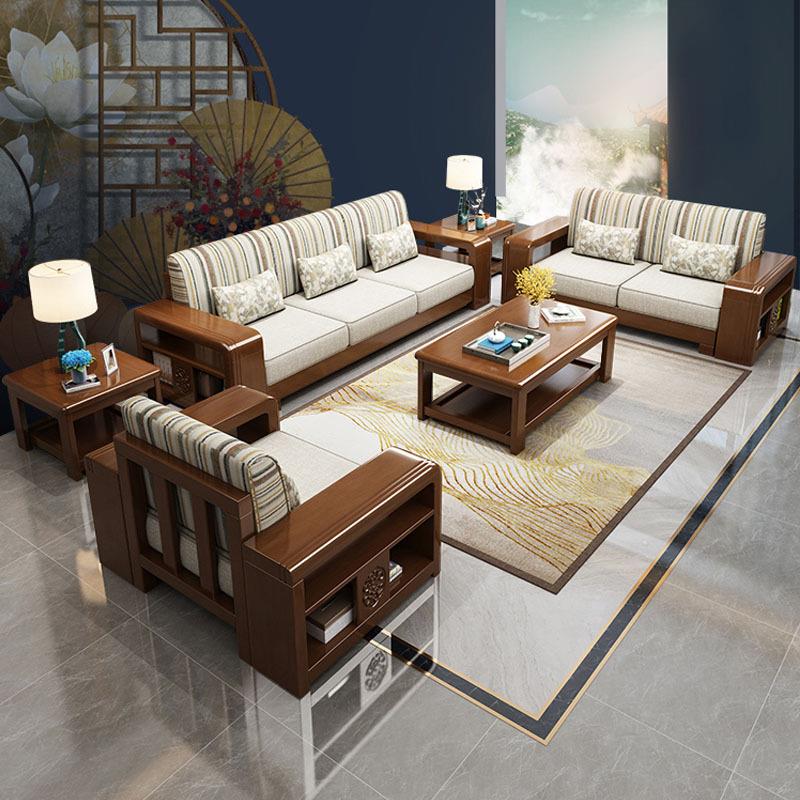 实木沙发组合现代简约经济型小户型储物布艺新中式沙发客厅家具