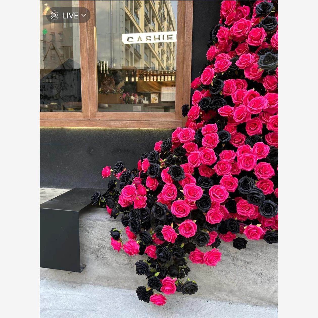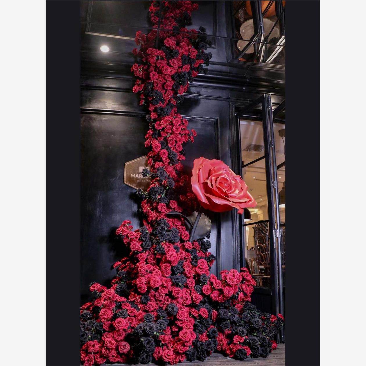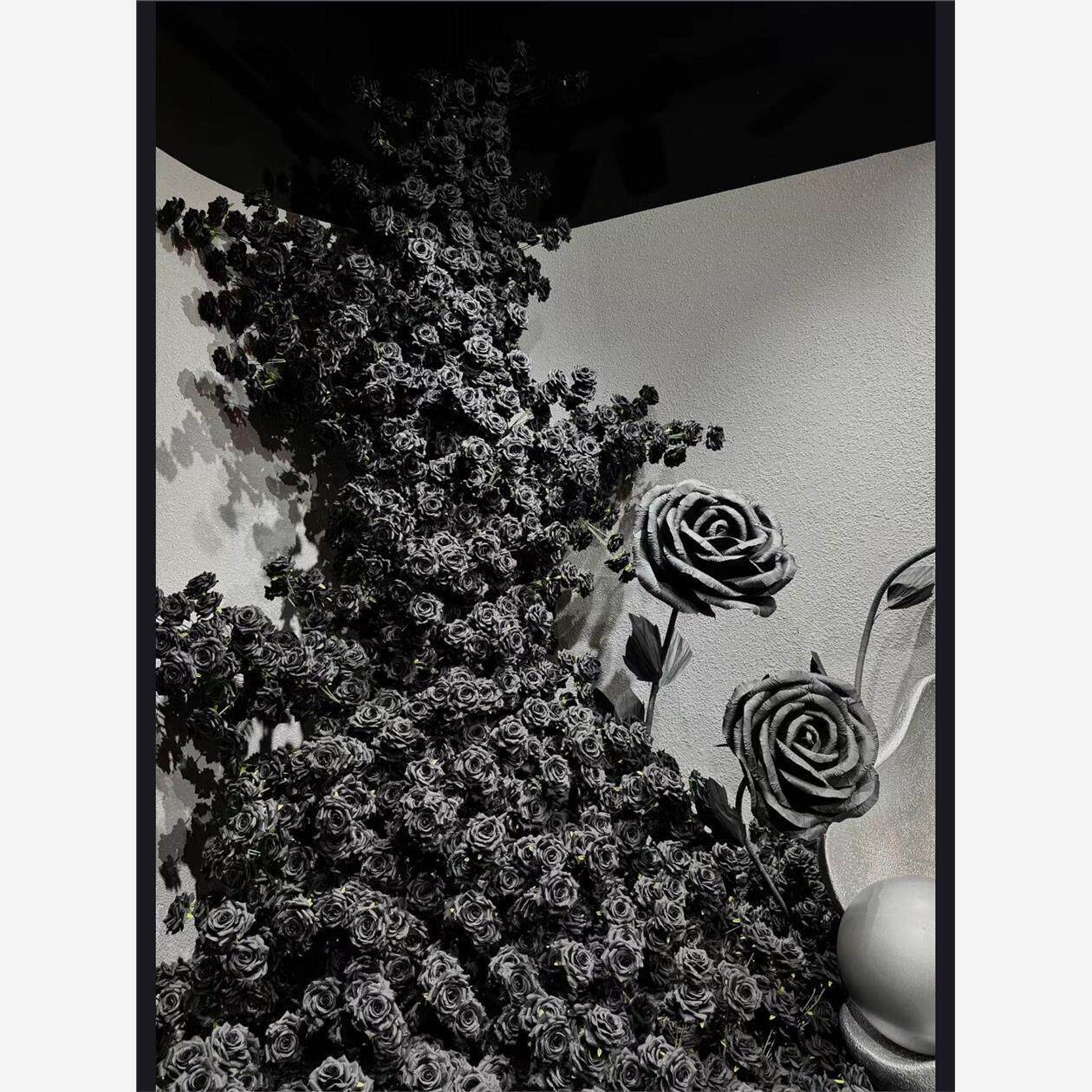 彷真花彷真玫瑰花瀑布玫瑰黑色装饰布置商场婚庆网红打卡花墙引流