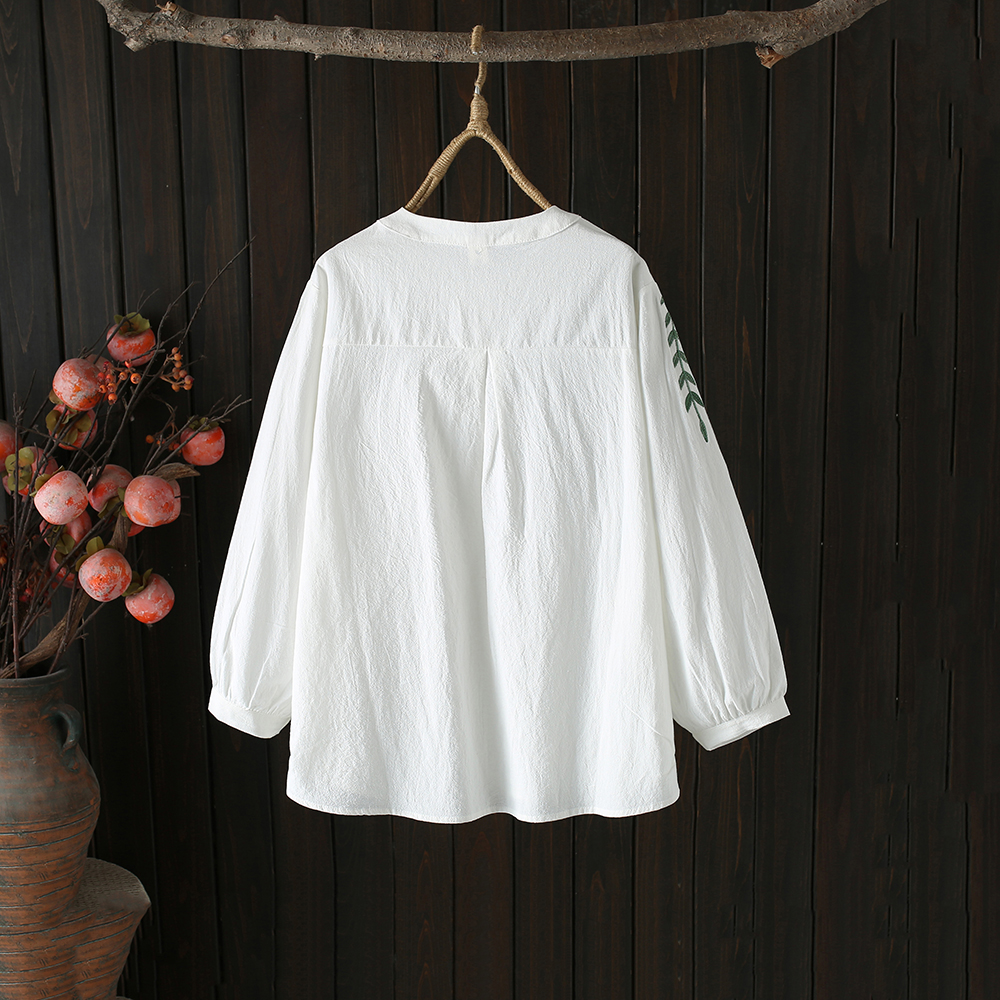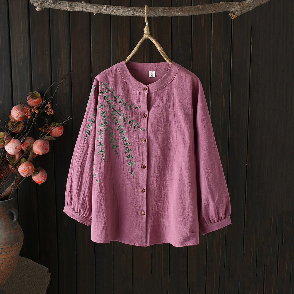大码文艺风刺绣棉麻衬衫女中老年洋气设计感宽松显瘦加肥长袖上衣