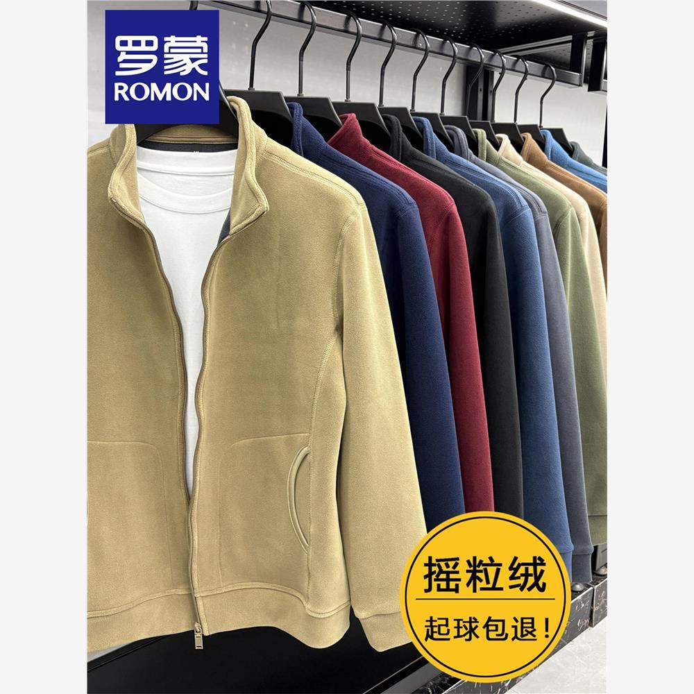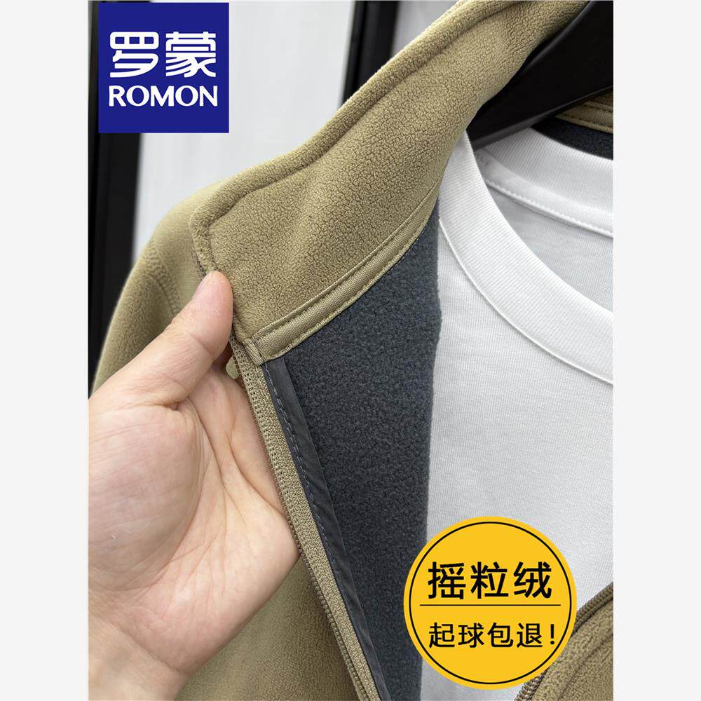 罗蒙专柜摇粒绒外套男士秋冬抓绒衣双面绒加绒加厚冲锋衣内胆夹克