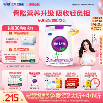 【杨幂推荐】君乐宝至臻A2奶牛奶粉3段幼儿配方奶粉A2奶源805g*1
