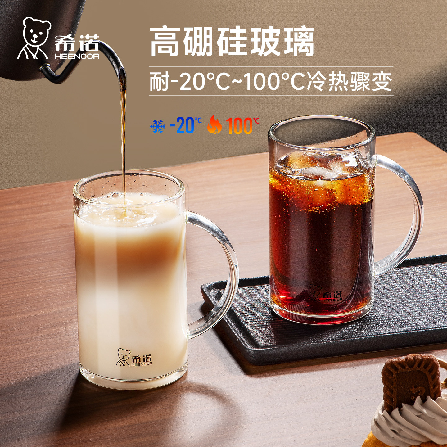 希诺单层加厚玻璃杯家用牛奶杯大容量茶杯带把手水杯办公室泡茶
