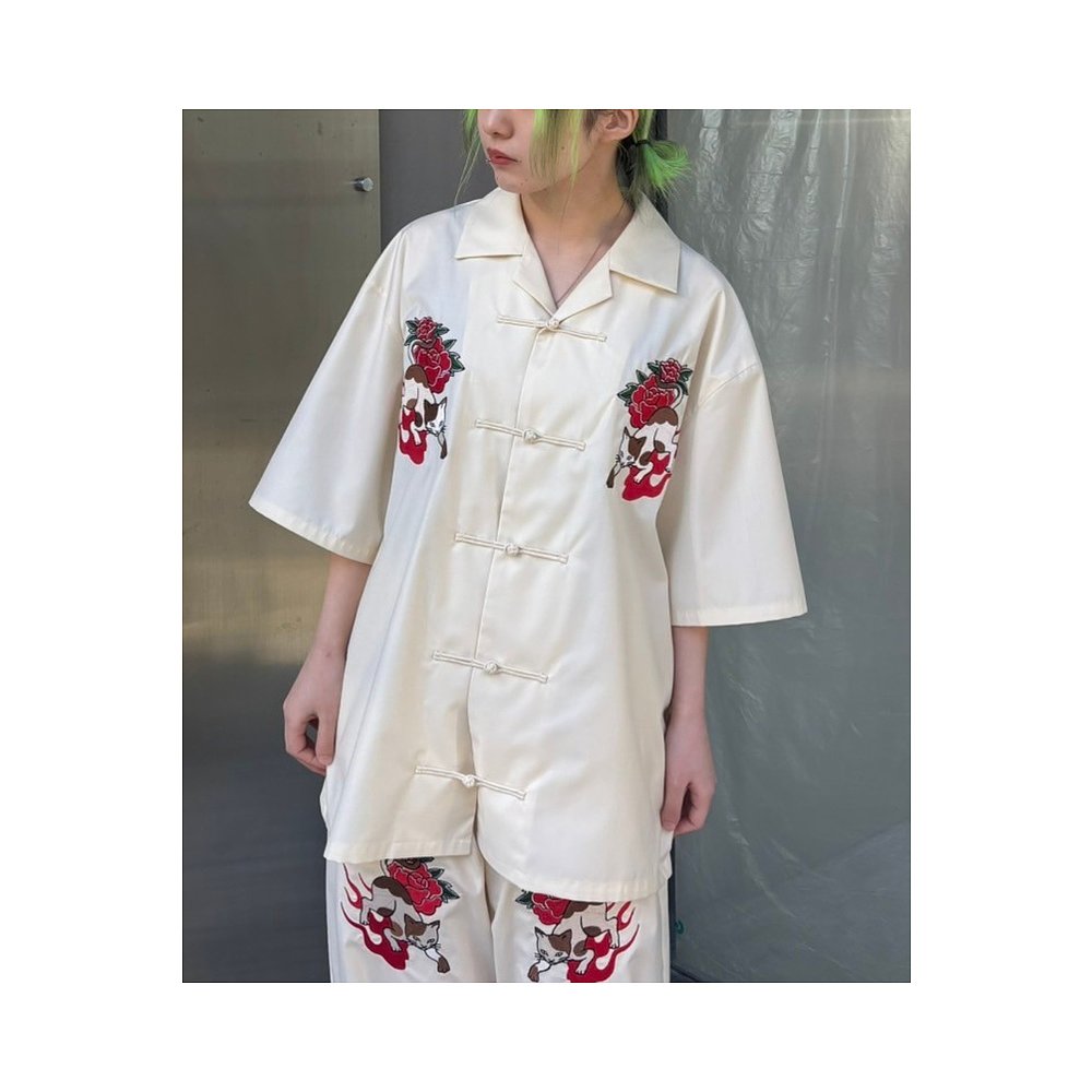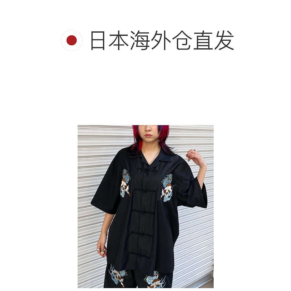 1h可退 日本直邮Candy Stripper 男款女款猫刺绣立领中式衬衫 124