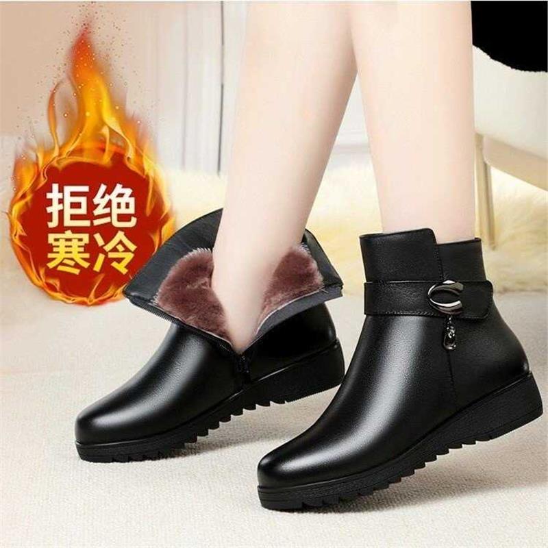 真皮妈妈棉鞋女冬加绒靴子女士短靴软底防滑羊毛皮鞋中老年女鞋子