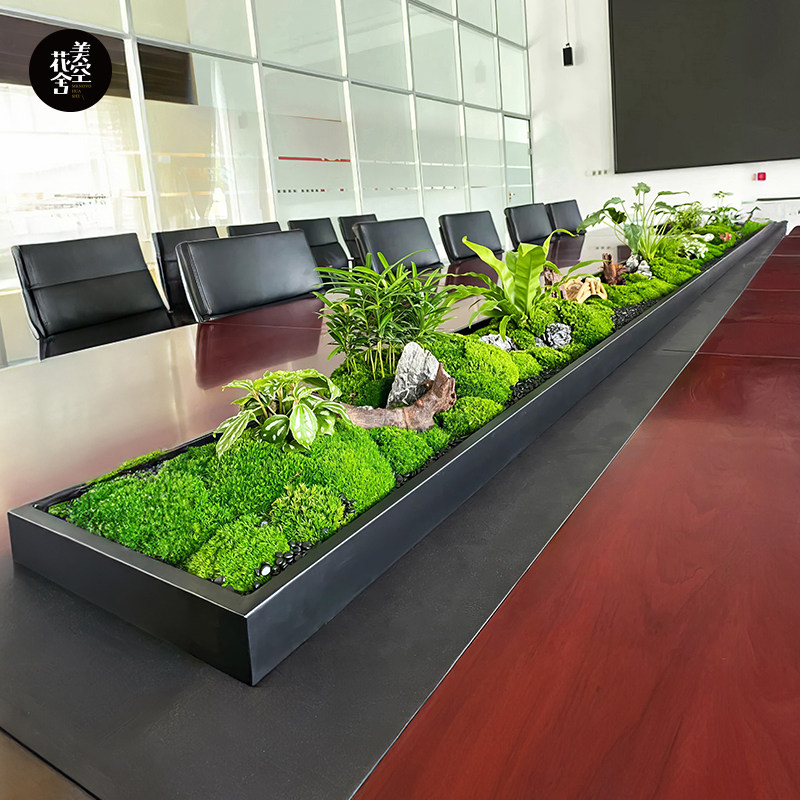 上海美空会议桌摆花长桌微景观造景仿真绿植青苔桌面中间装饰植物