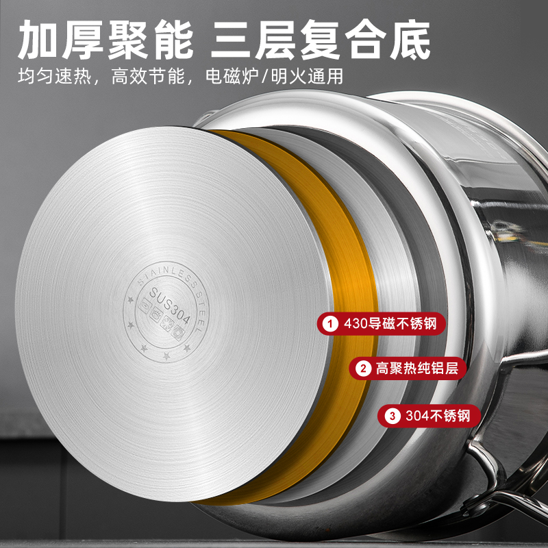 特厚食品级304不锈钢复底汤锅家用煮粥燃气电磁炉专用煲汤双耳锅
