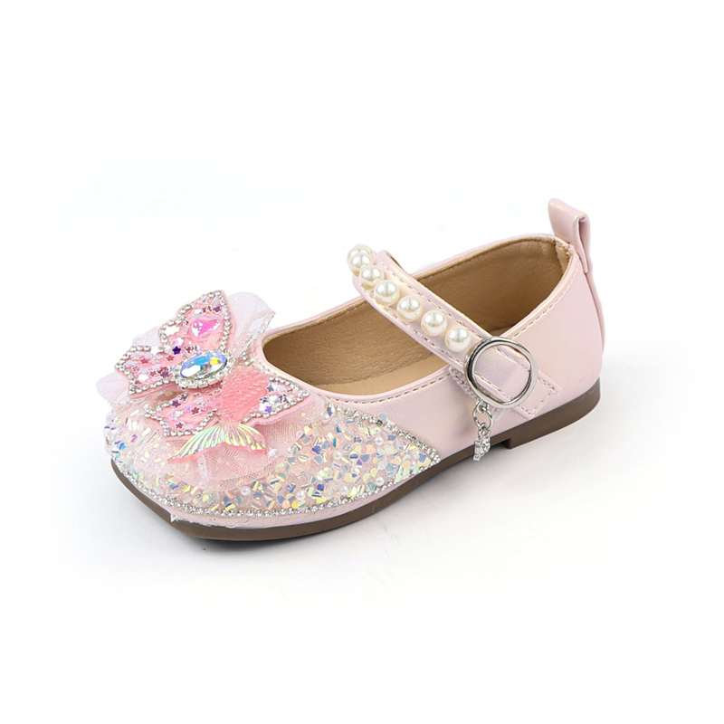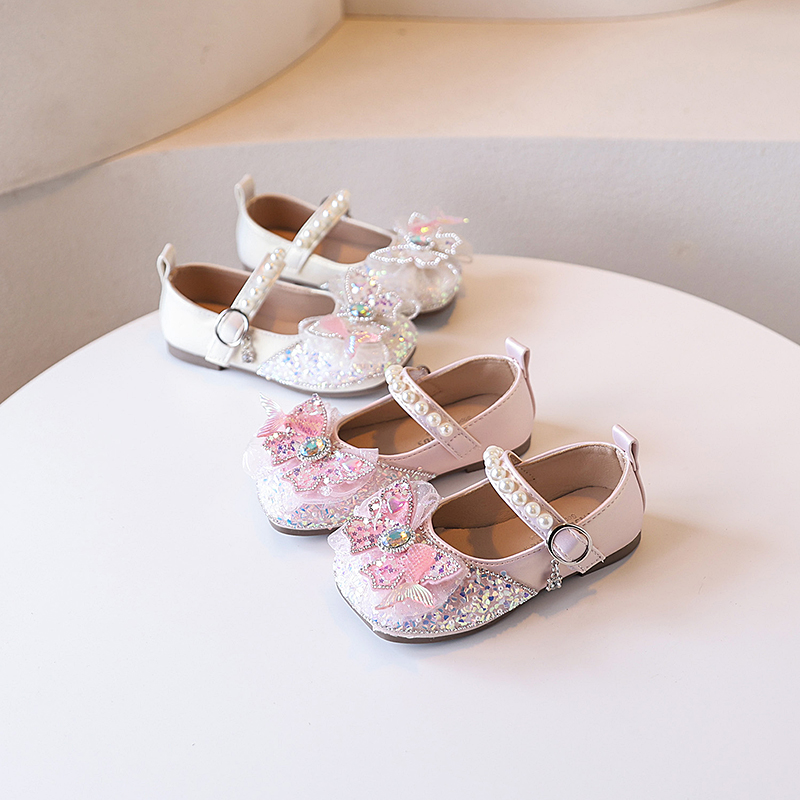 女童亮片蝴蝶结公主鞋软底时尚小皮鞋2025春秋新款小女孩防滑单鞋