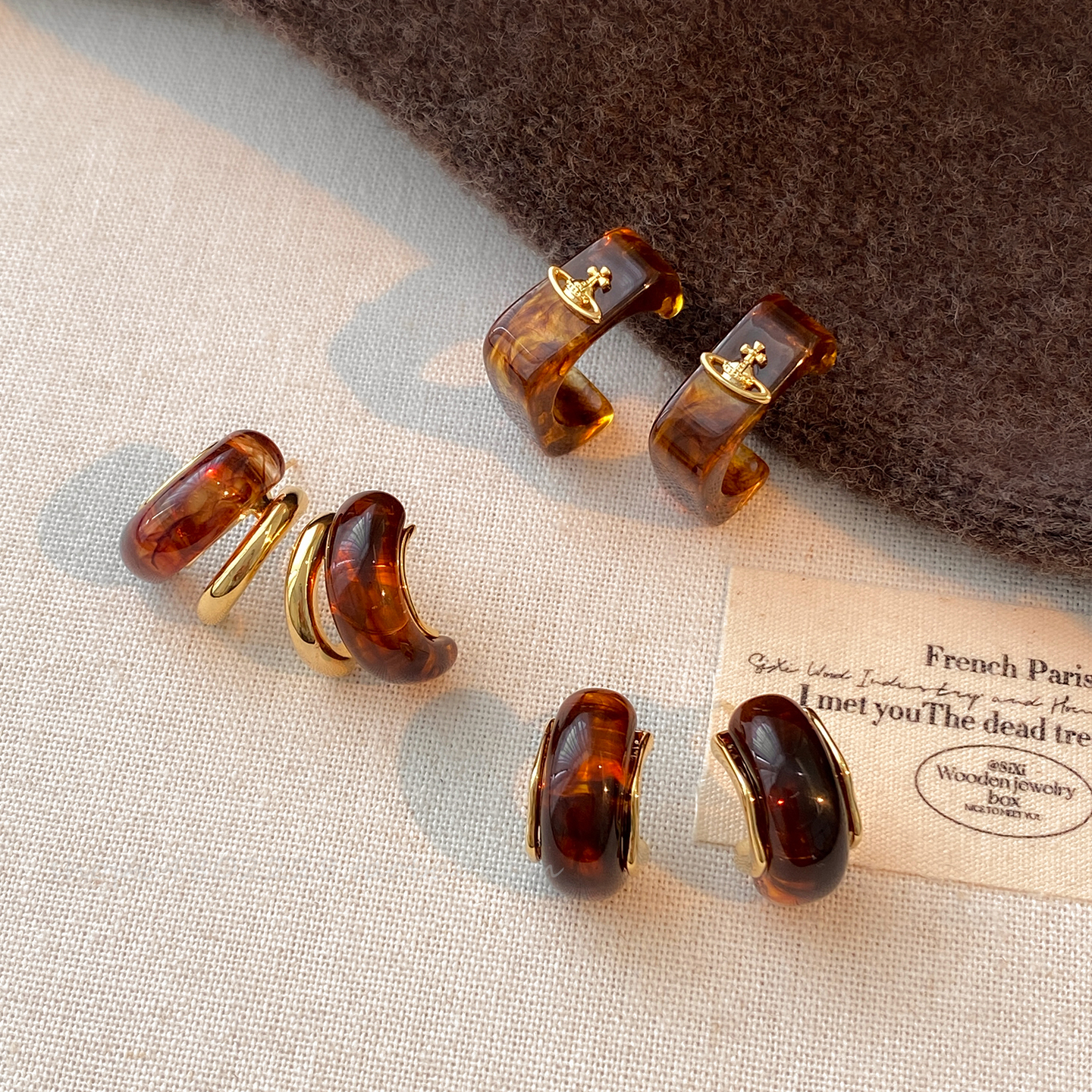 复古琥珀色C形耳环女2025新款轻奢高级感气质耳钉时尚百搭耳饰品
