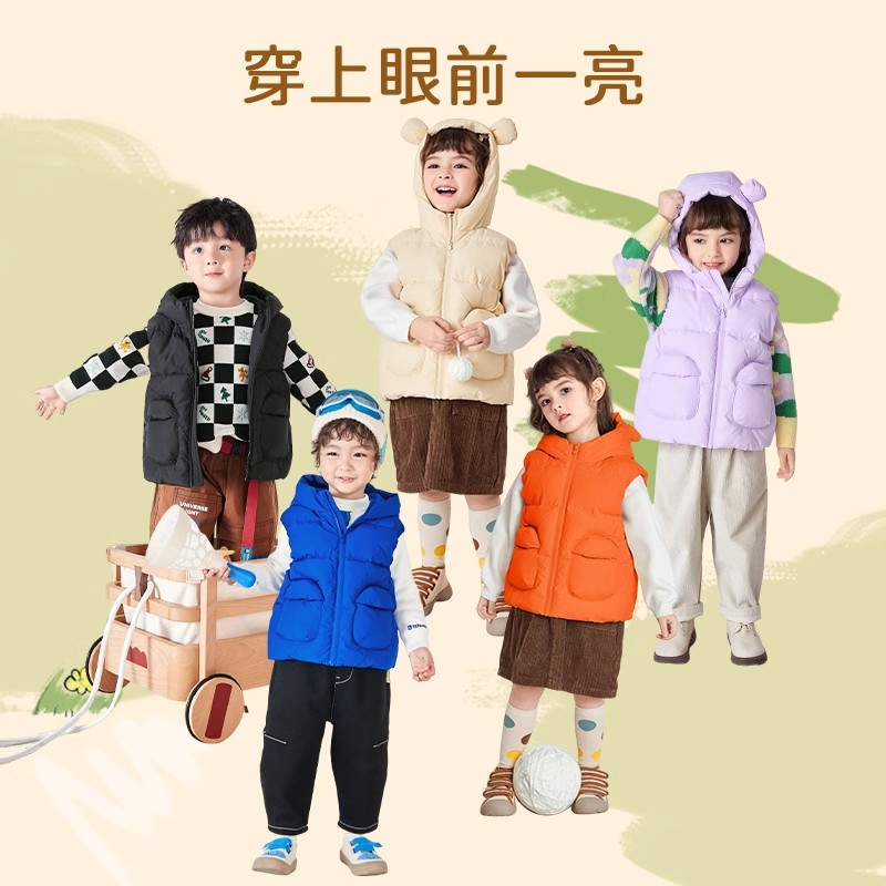男童羽绒马甲女童背心儿童宝宝秋冬新款上衣连帽马夹防风保暖童装