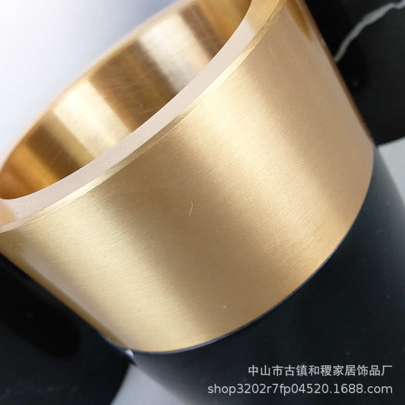 现代简约家居软装饰品桌面花插样板房花瓶摆件黑色大理石花器